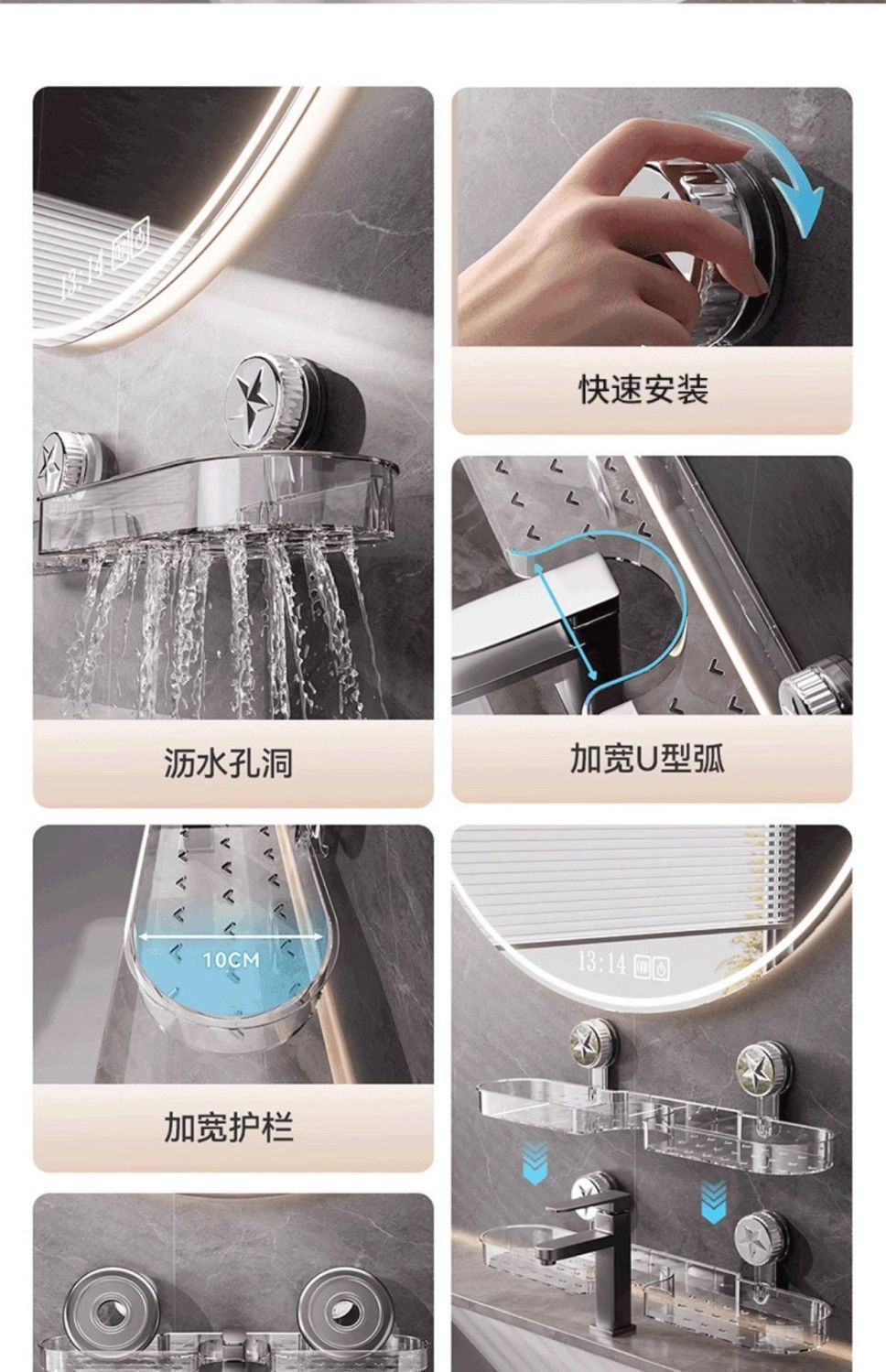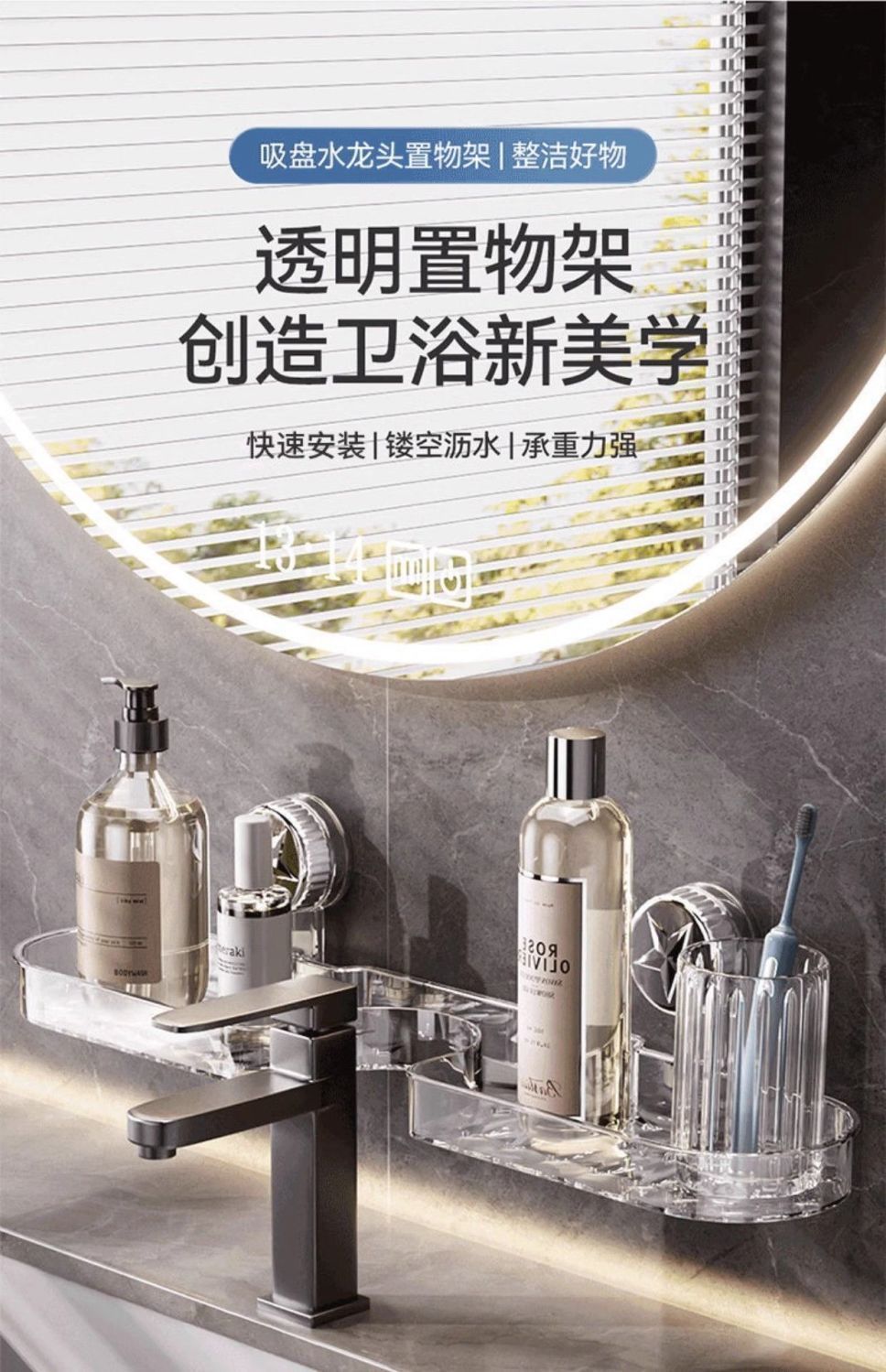 洗手间吸盘水龙头置物架卫生间浴室免打孔沥水壁挂式收纳架可拆卸