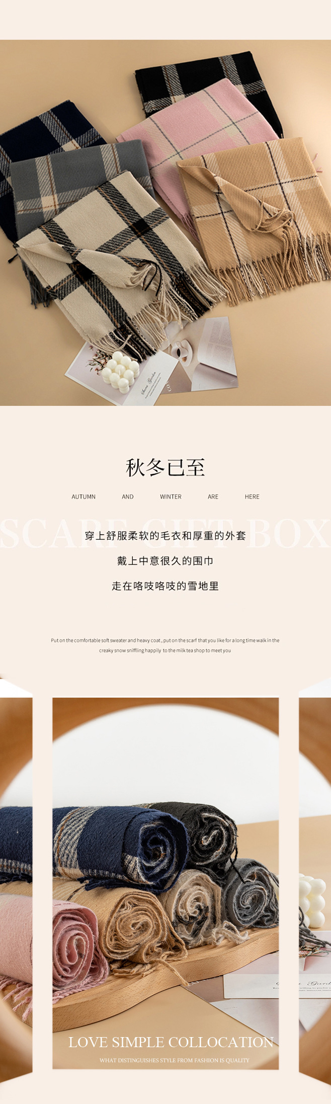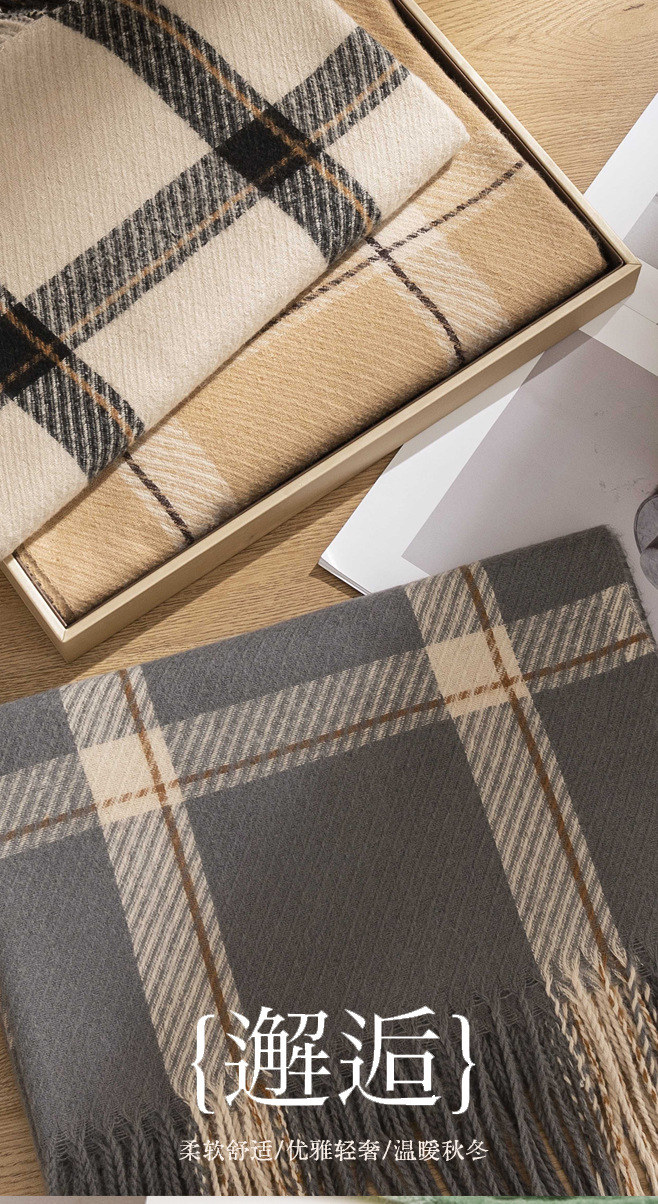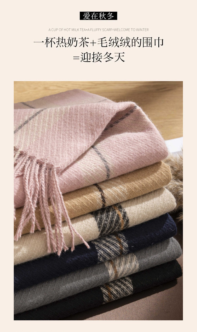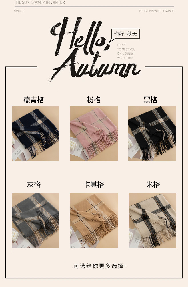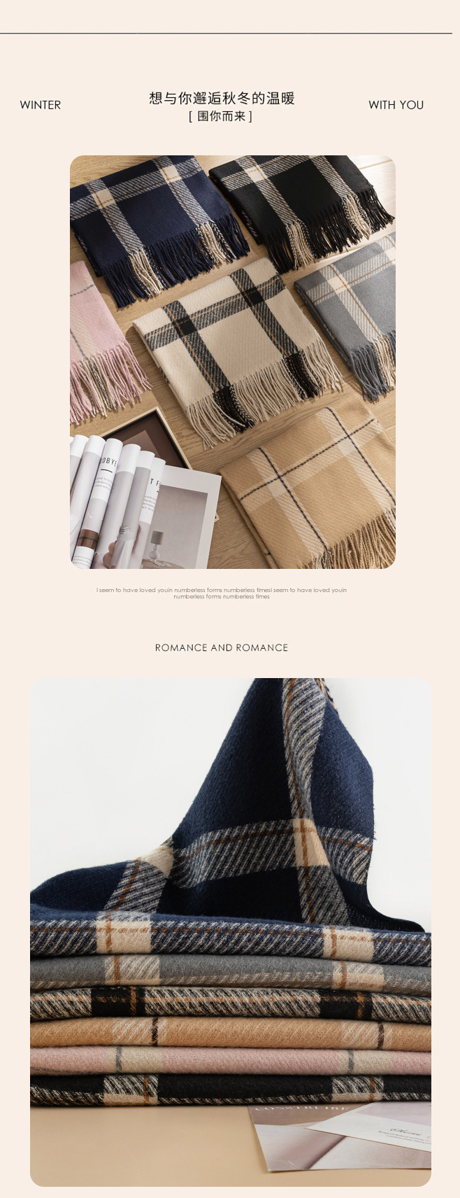 冬季新款格子围巾印花流苏仿羊绒围巾时尚甜美披肩中长厚保暖围脖