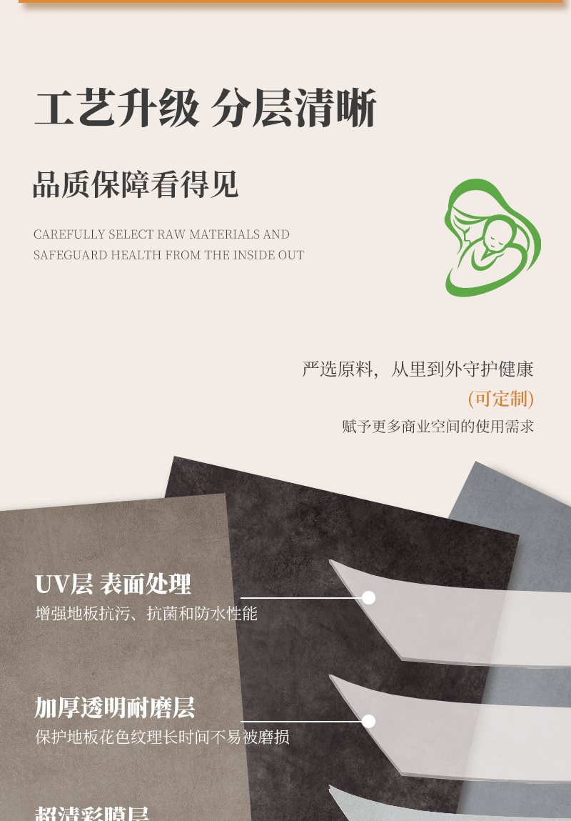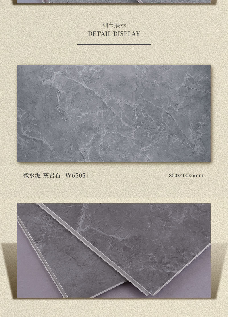 6mm微水泥SPC石塑锁扣地板锁扣石晶商业空间防水石纹地板防水地板