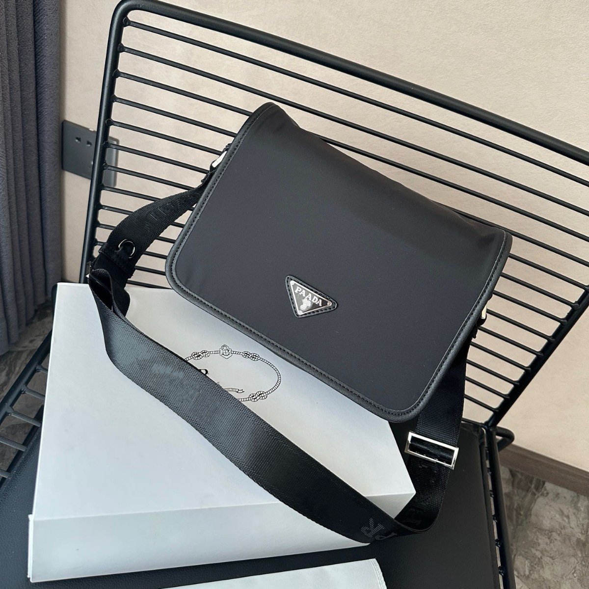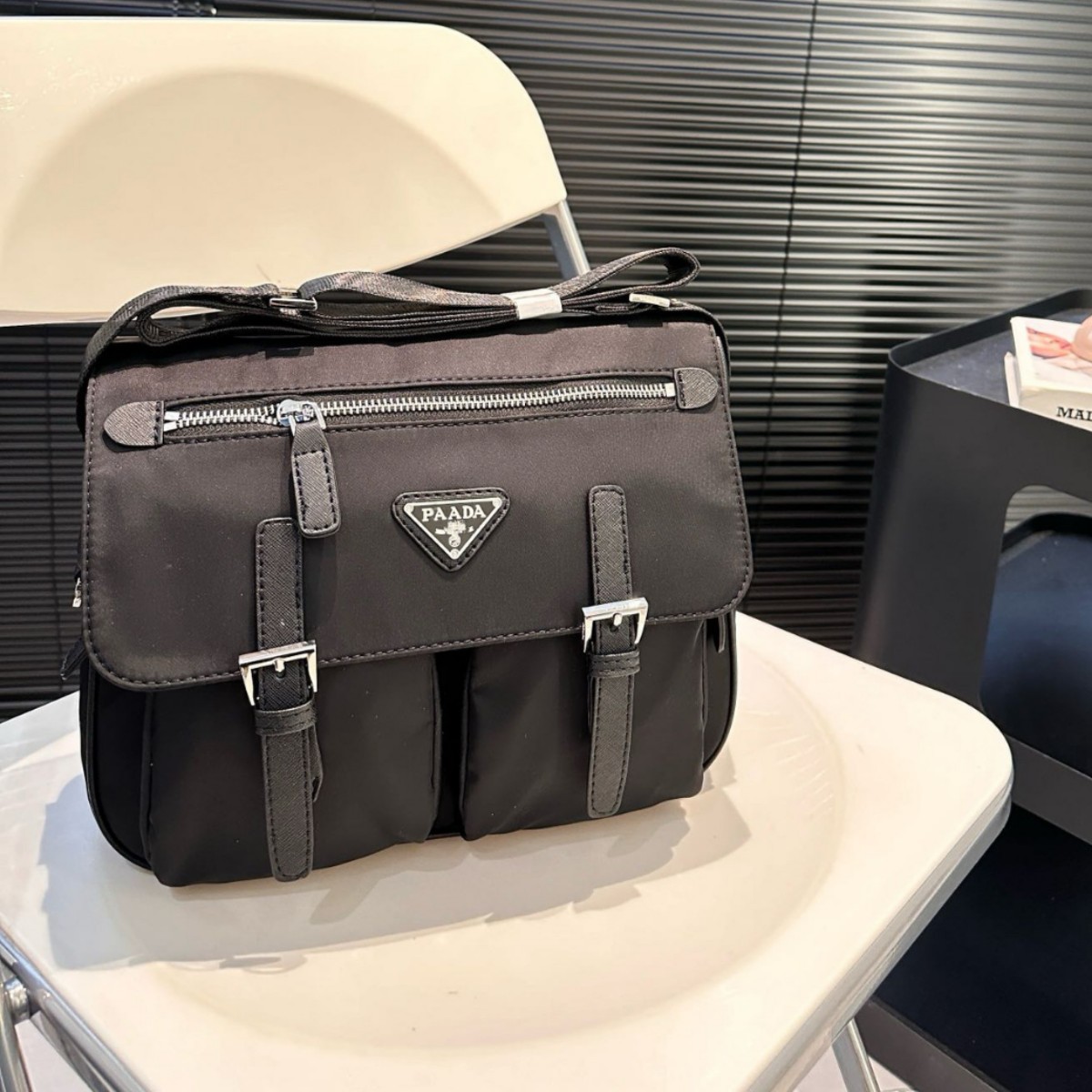 P家翻盖斜跨包尼龙斜挎包单肩纯色插扣时尚运动通勤男女同款户外