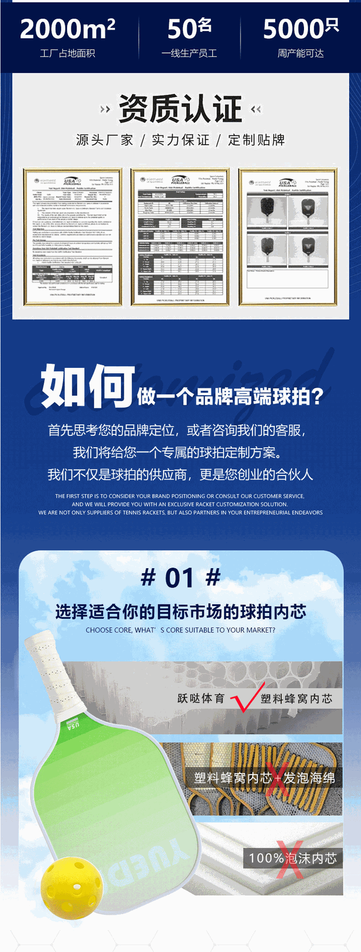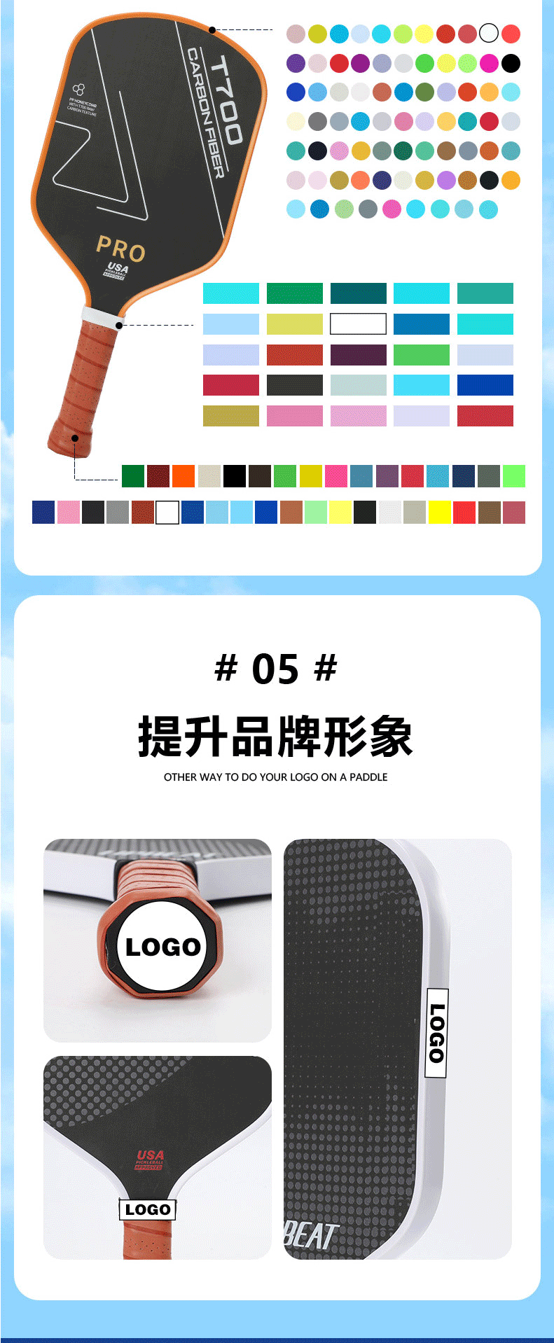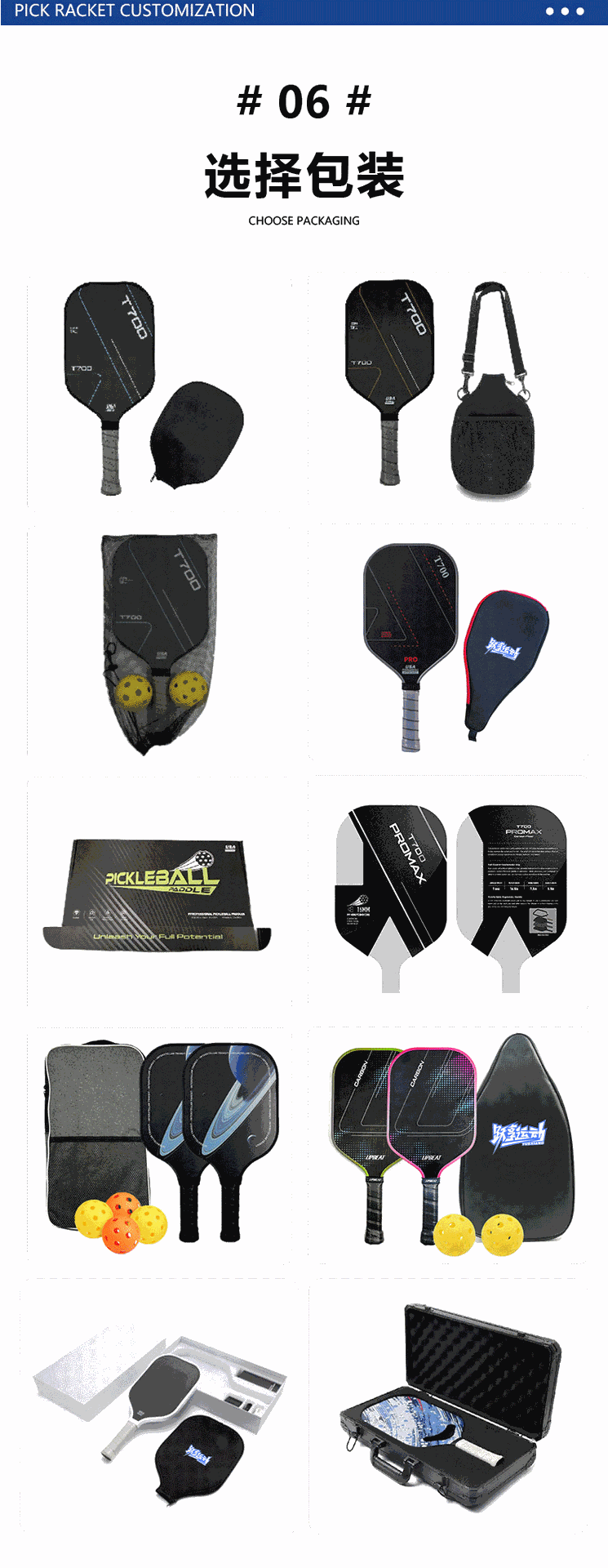 カーボンファイバーグラスファイバーピックルボールパドルPPハニカムUV印刷セットコンプリートセット