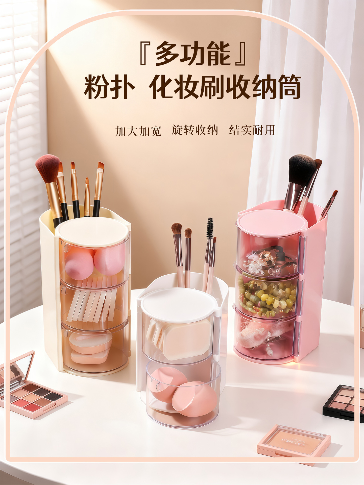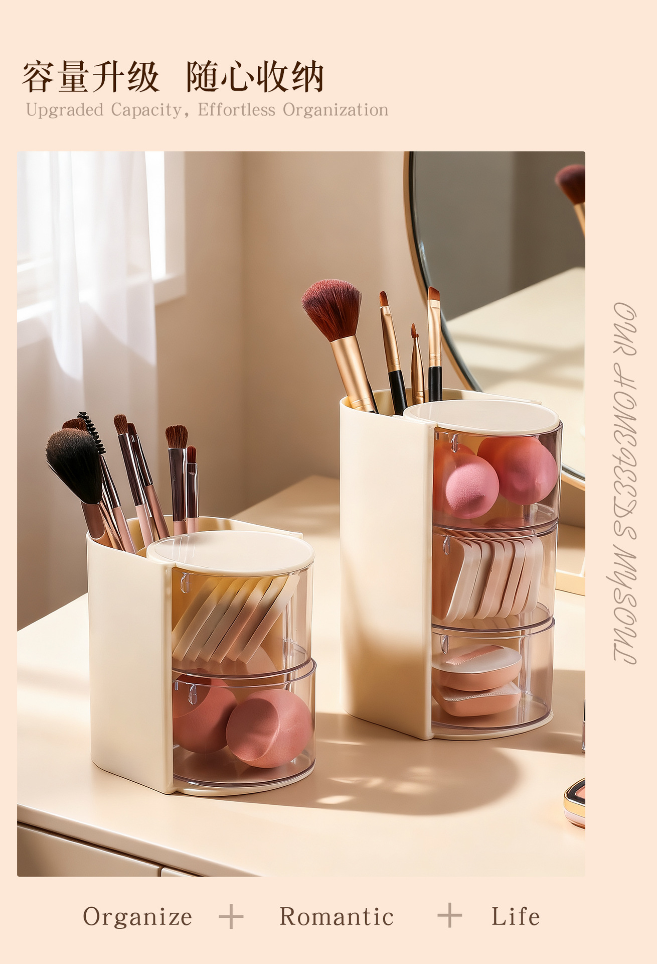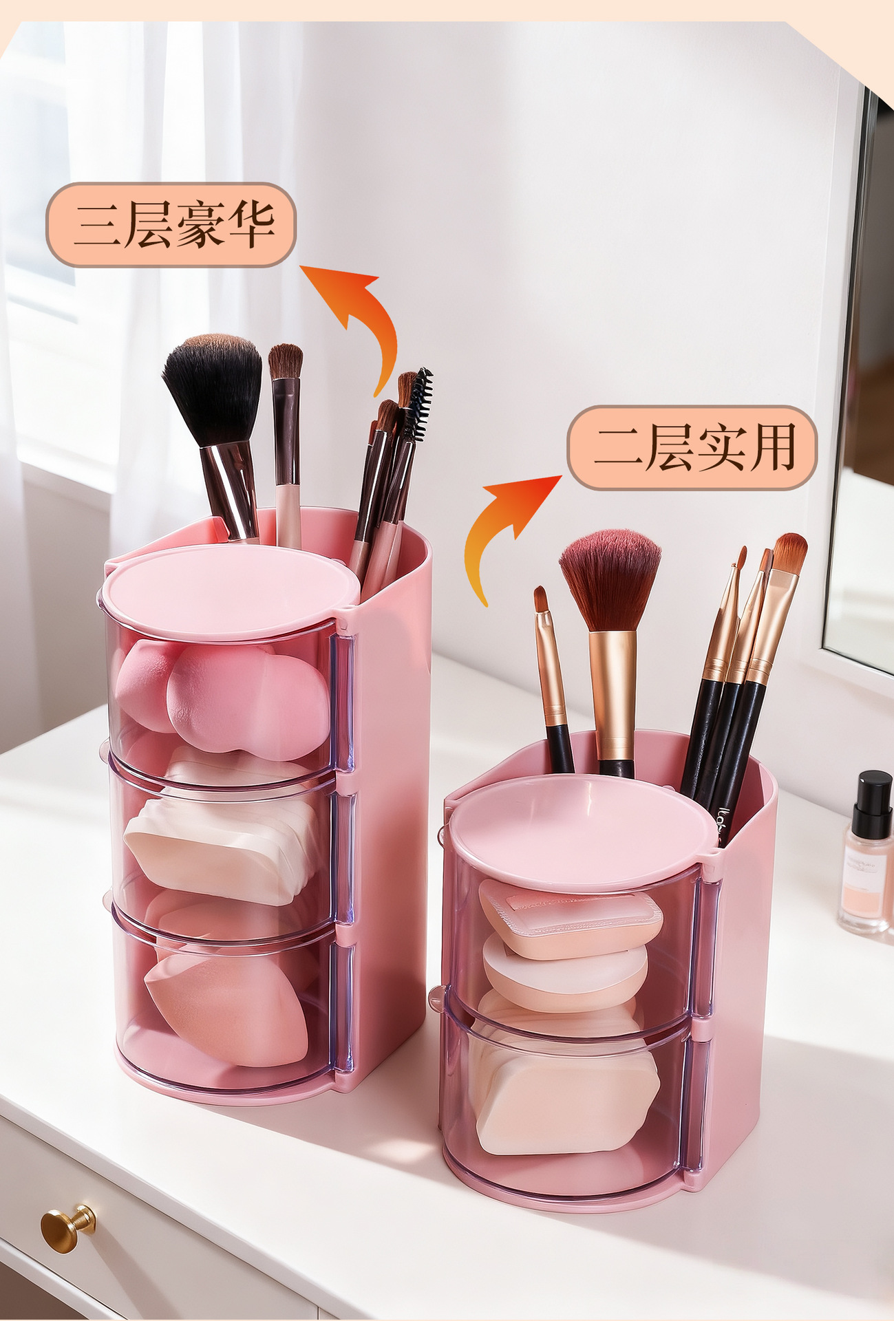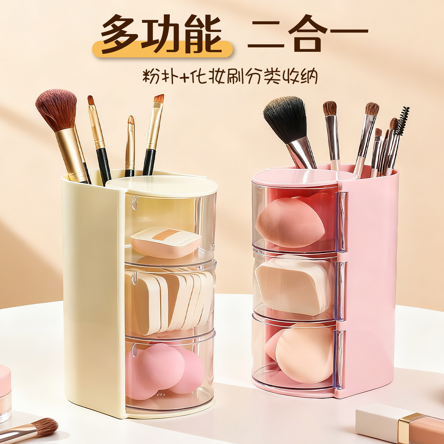 化妆品工具收纳盒旋转防尘桌面美妆蛋气垫架梳妆台多层粉扑收纳盒