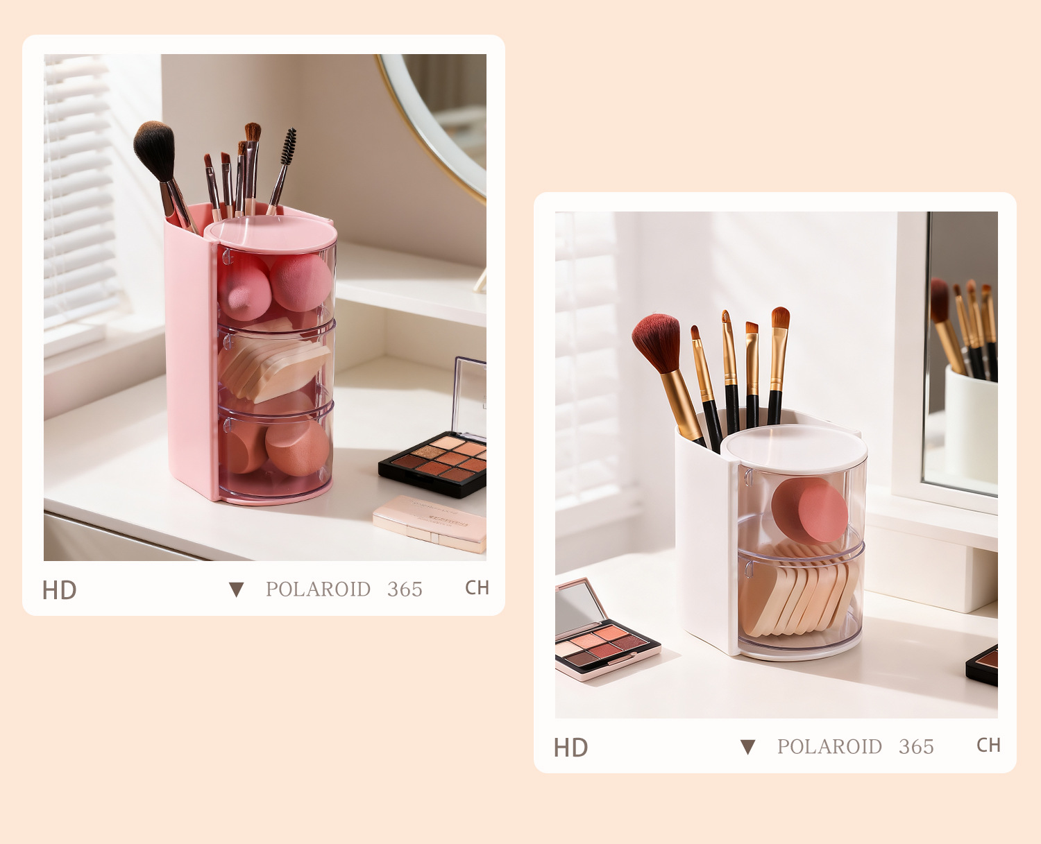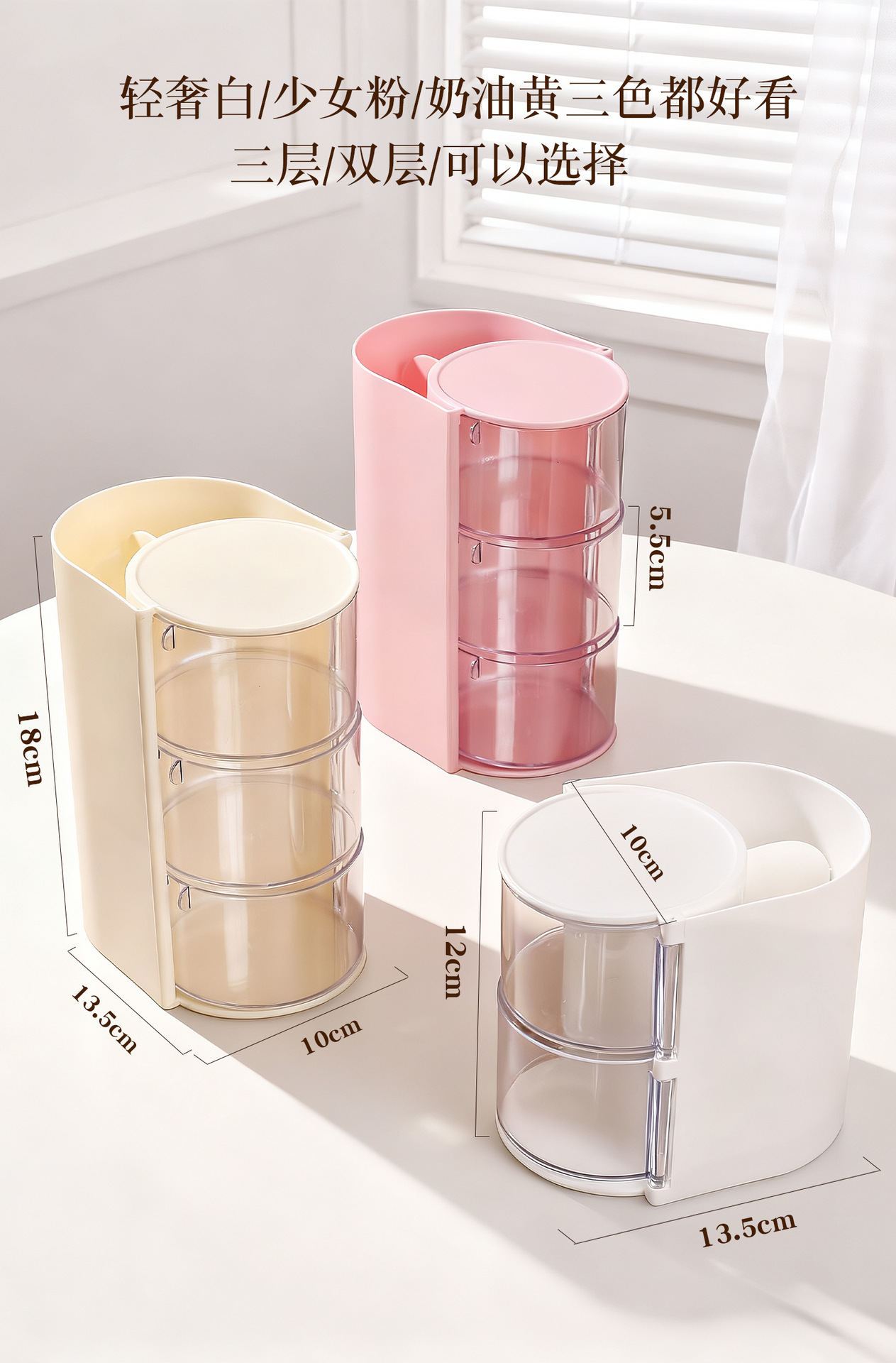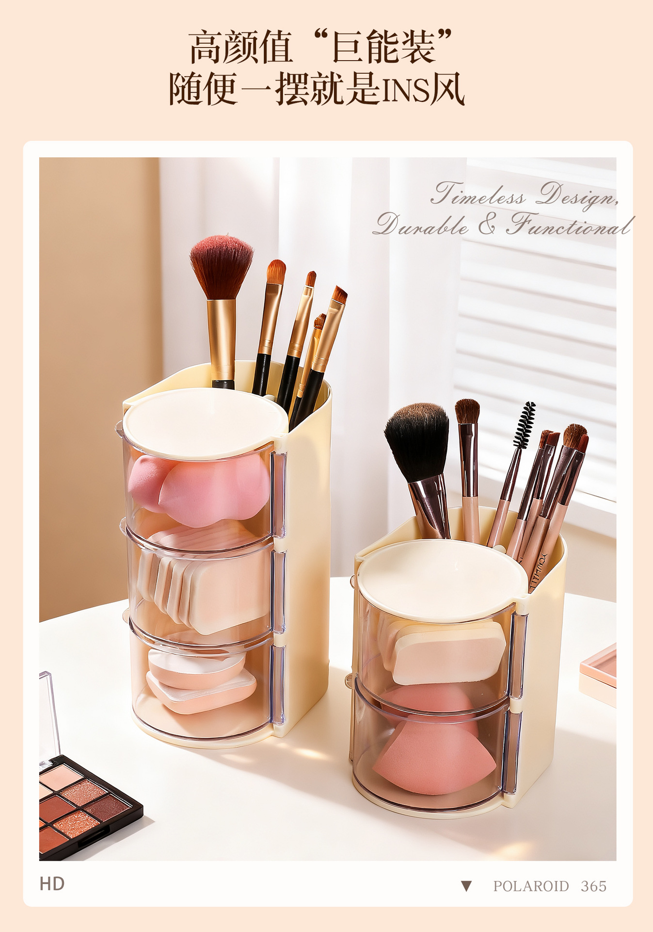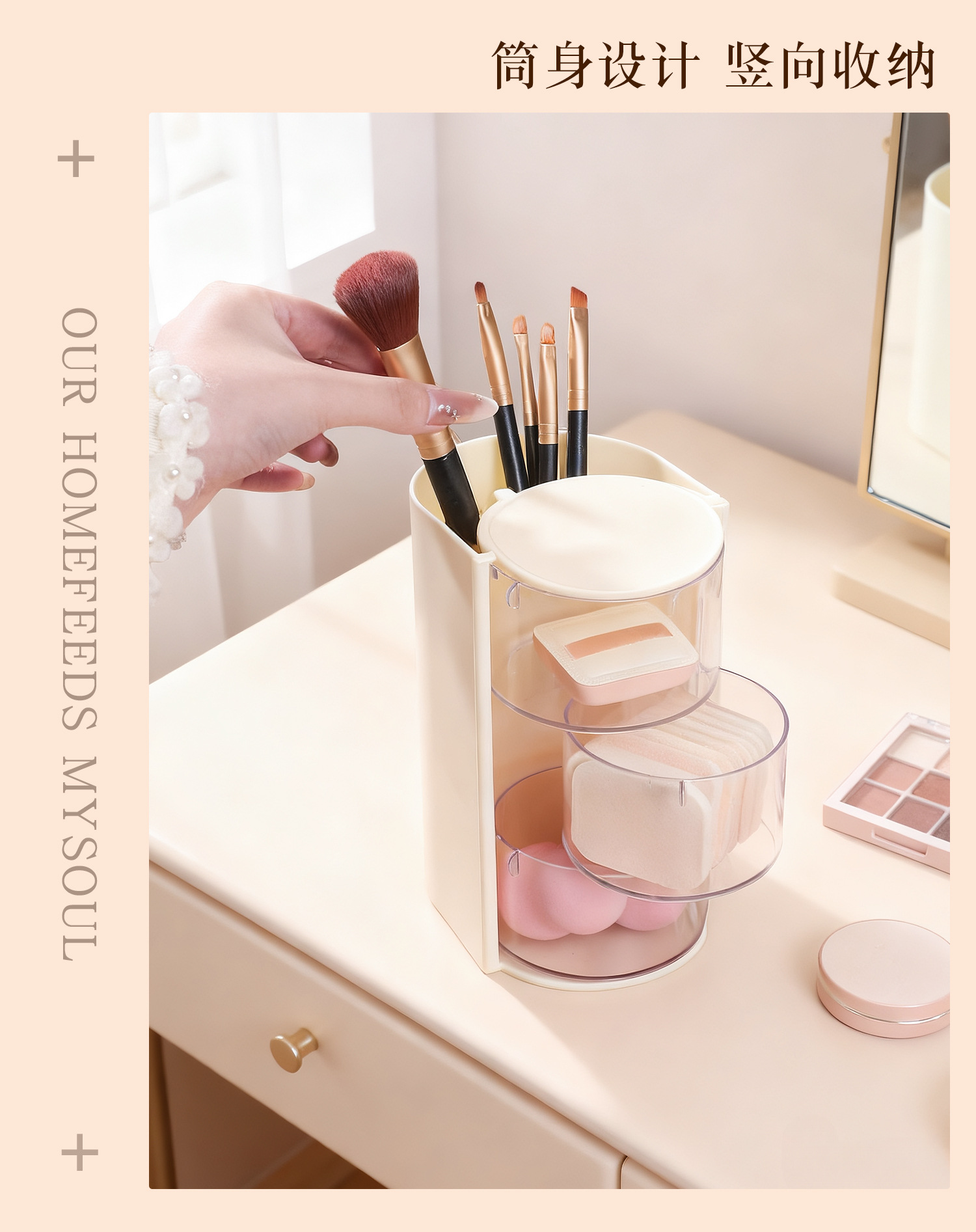 化妆品工具收纳盒旋转防尘桌面美妆蛋气垫架梳妆台多层粉扑收纳盒
