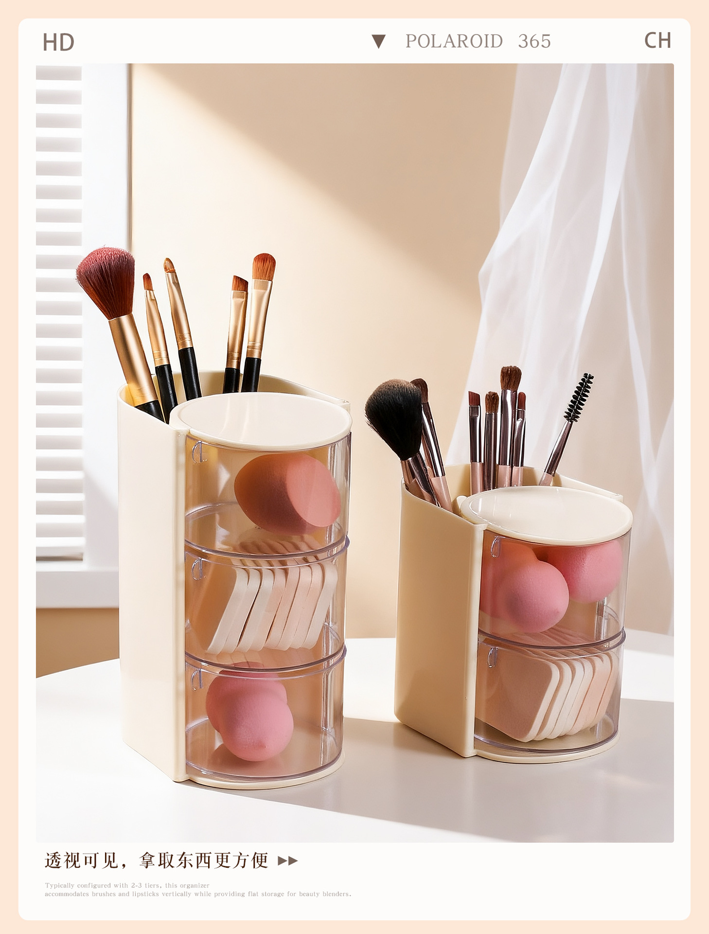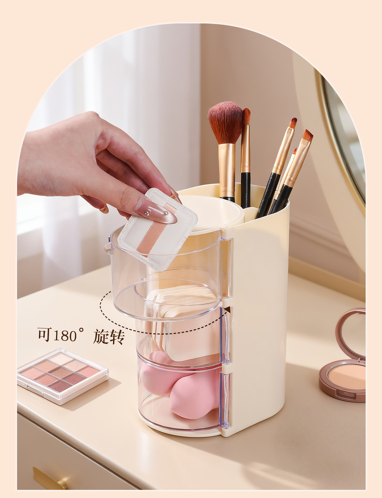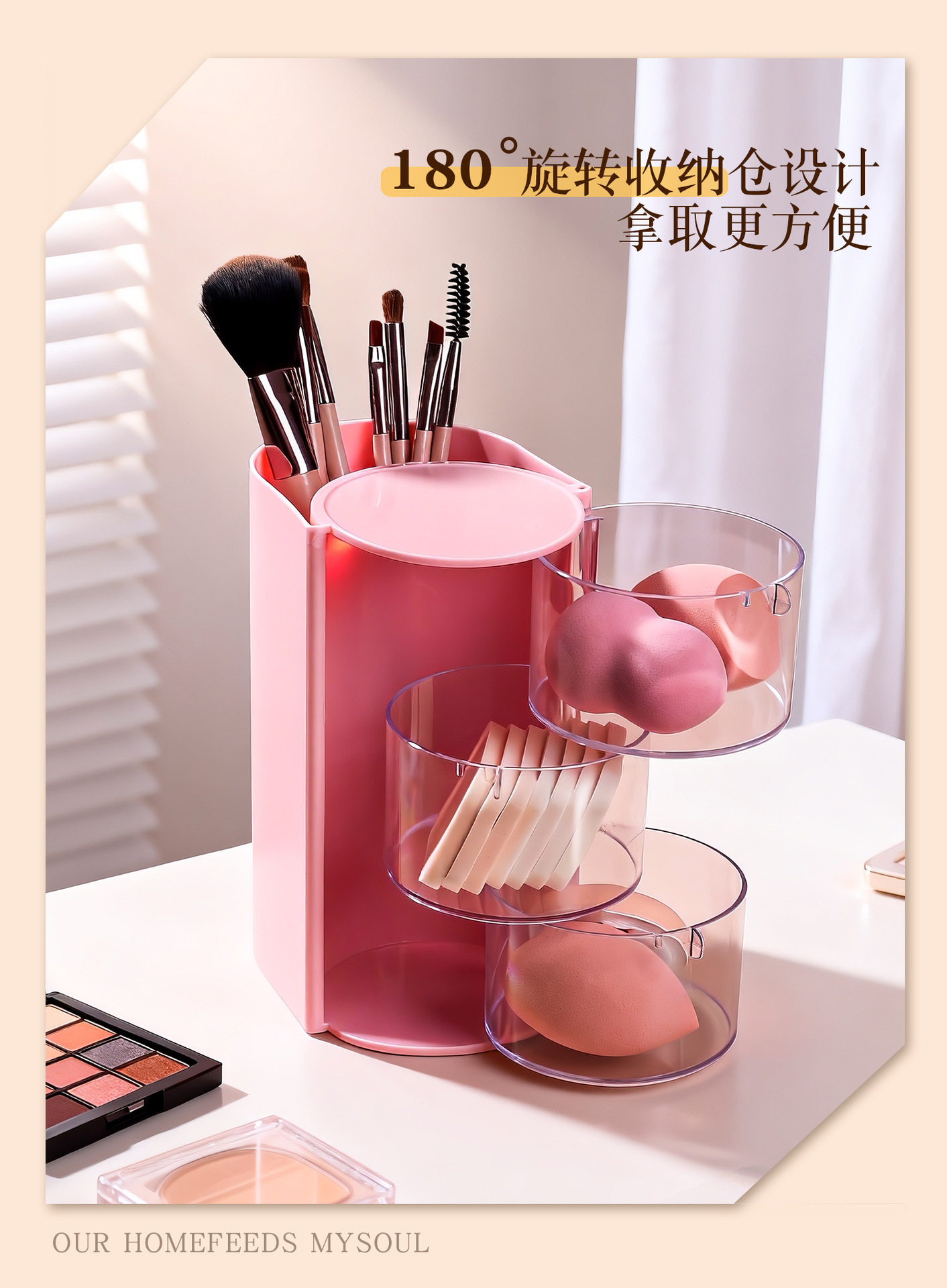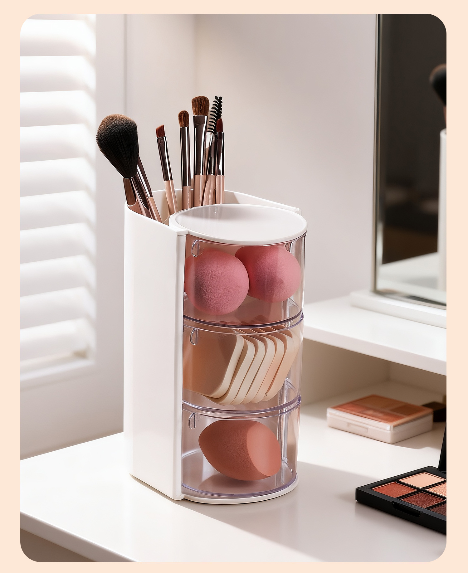 化妆品工具收纳盒旋转防尘桌面美妆蛋气垫架梳妆台多层粉扑收纳盒
