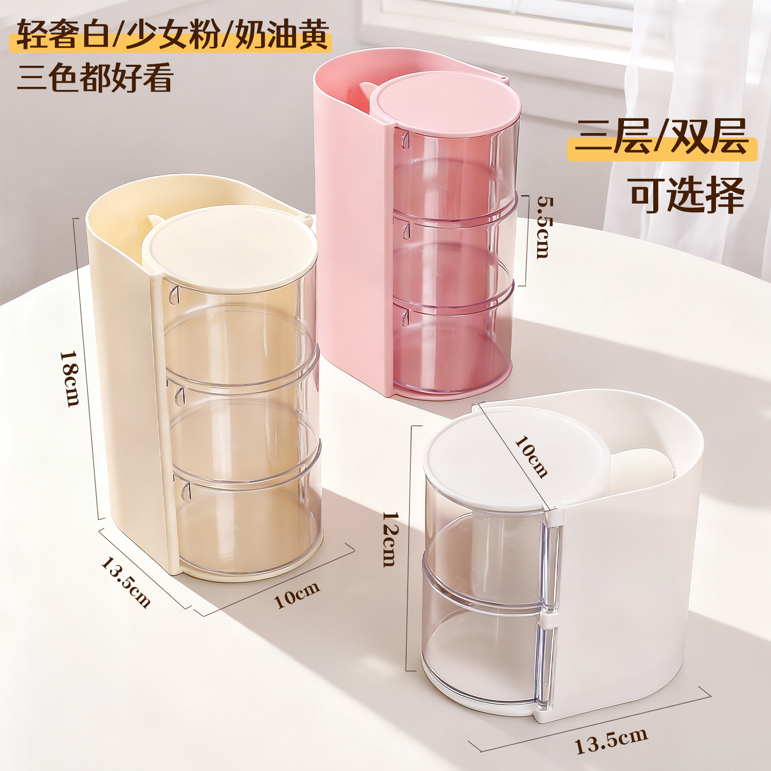 回転パウダーパフ収納ボックス多層ドレッシングテーブル口紅化粧ブラシ収納ラック防塵デスクトップ美容卵エアクッションラック