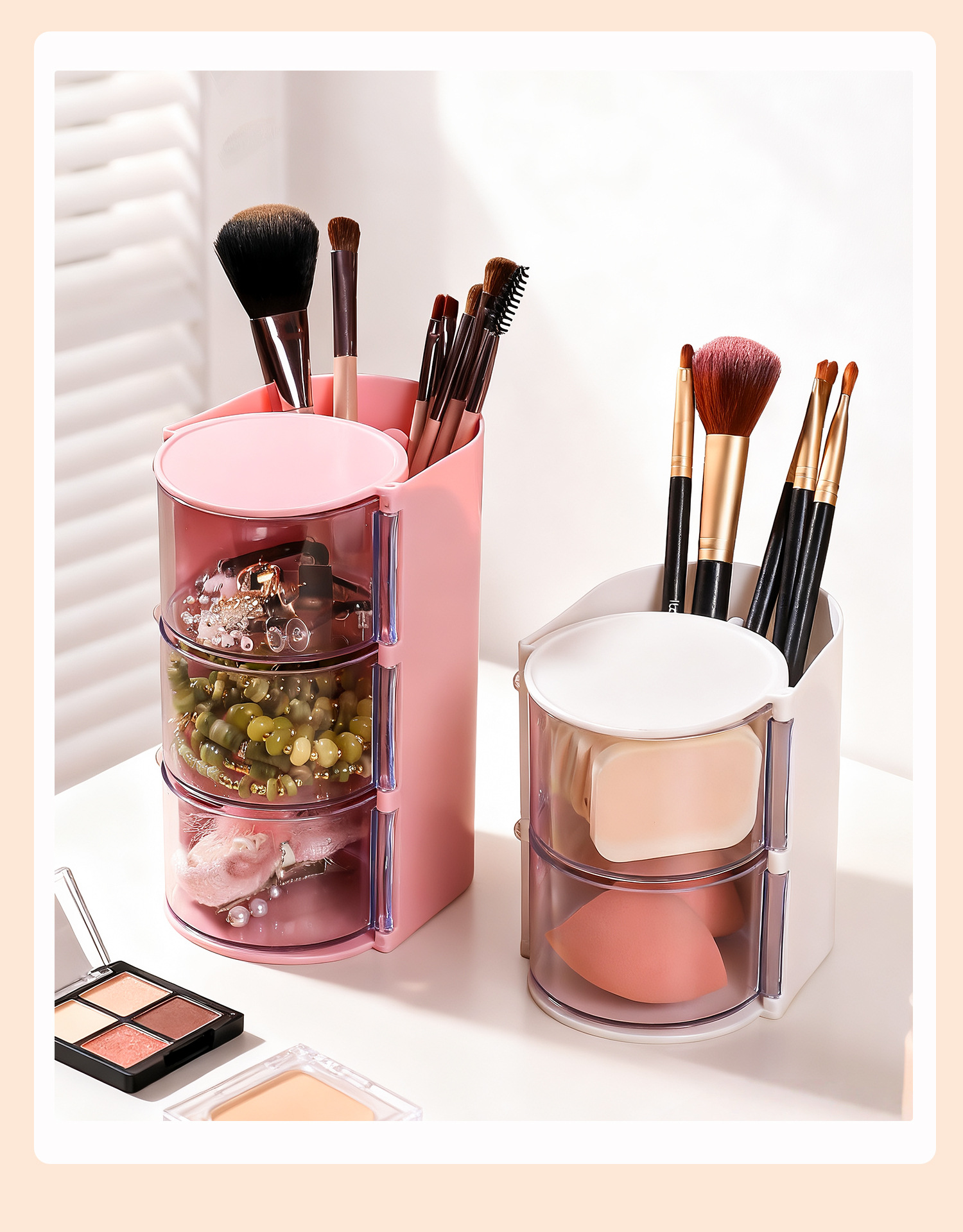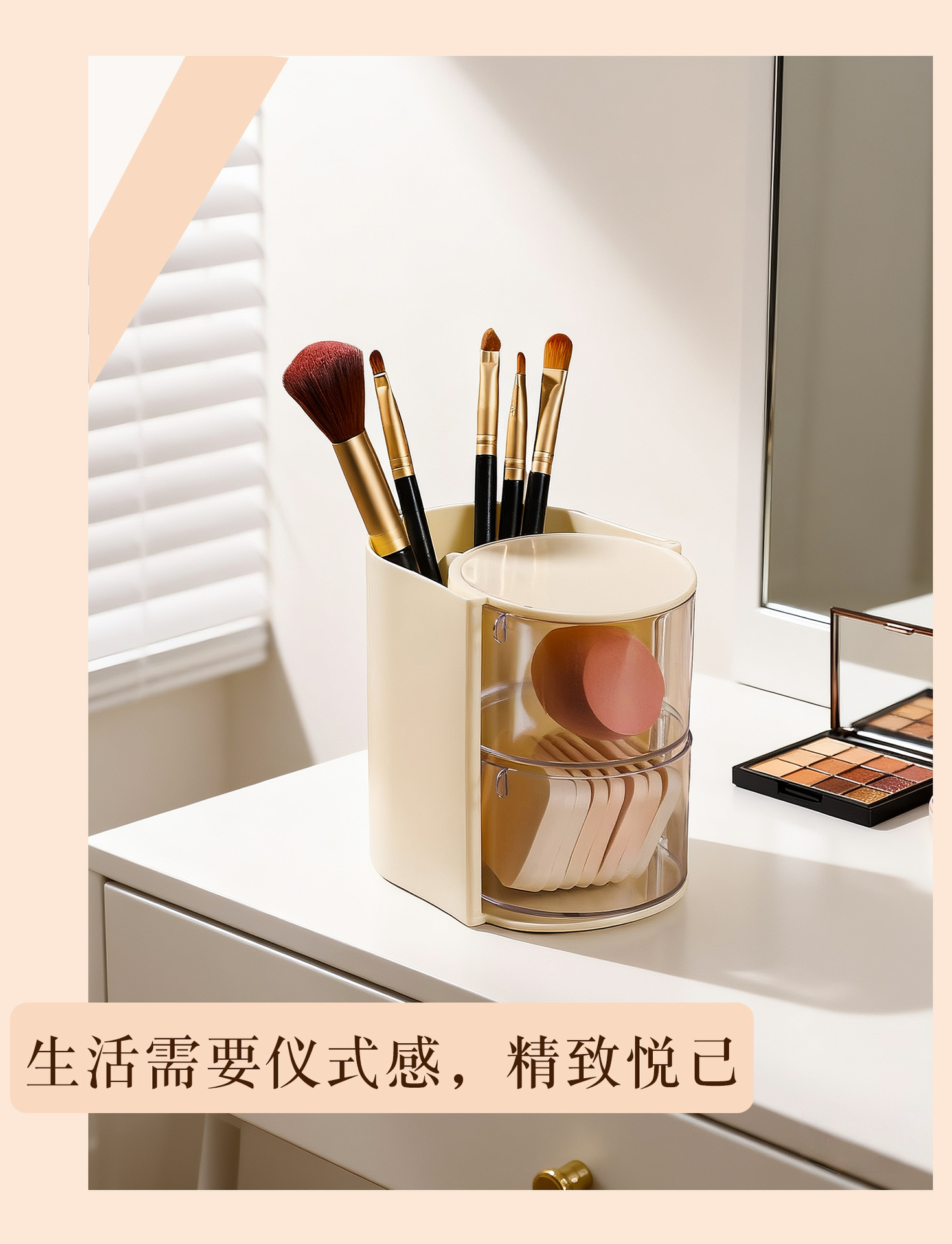 桌面旋转化妆刷收纳筒粉扑眉笔美妆蛋防尘收纳盒小型化妆品置物架