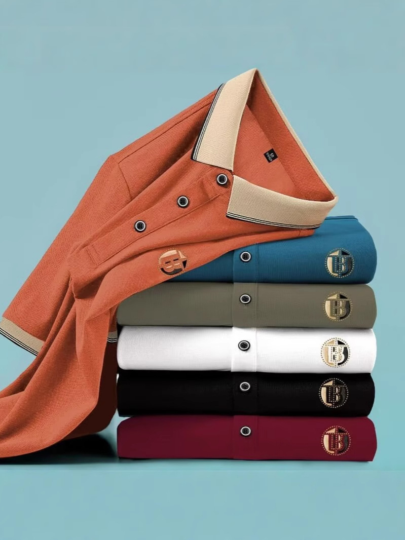 半袖のシャツをめくって、男性のファッションブランドの夏のシャツを着ます。