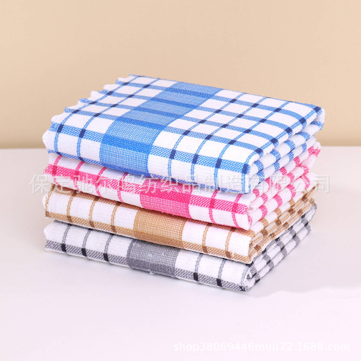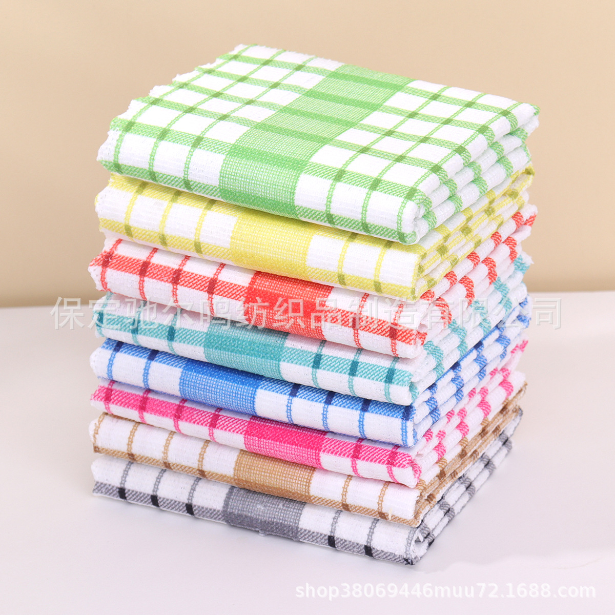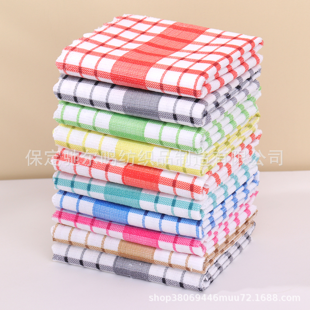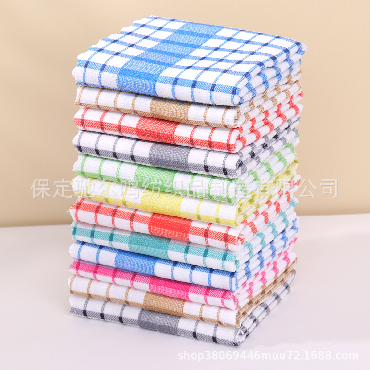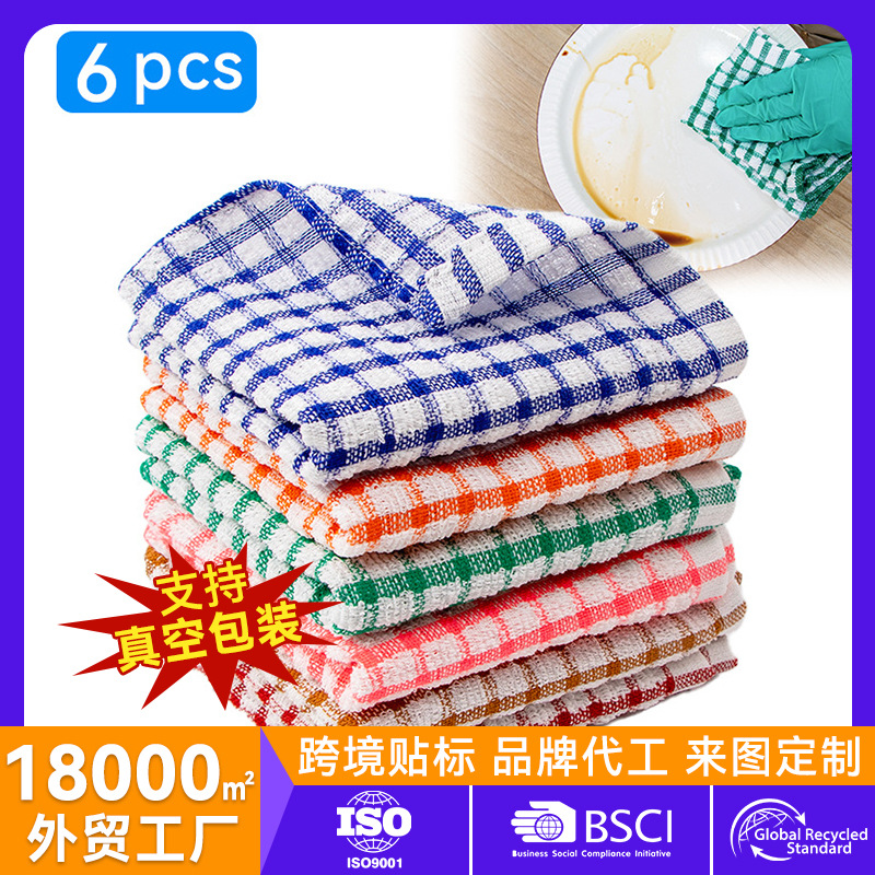 批发格子厨房茶巾吸水厨房巾跨境柔软毛巾抹布华夫格代贴标签代发