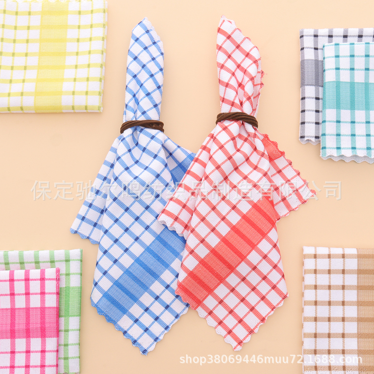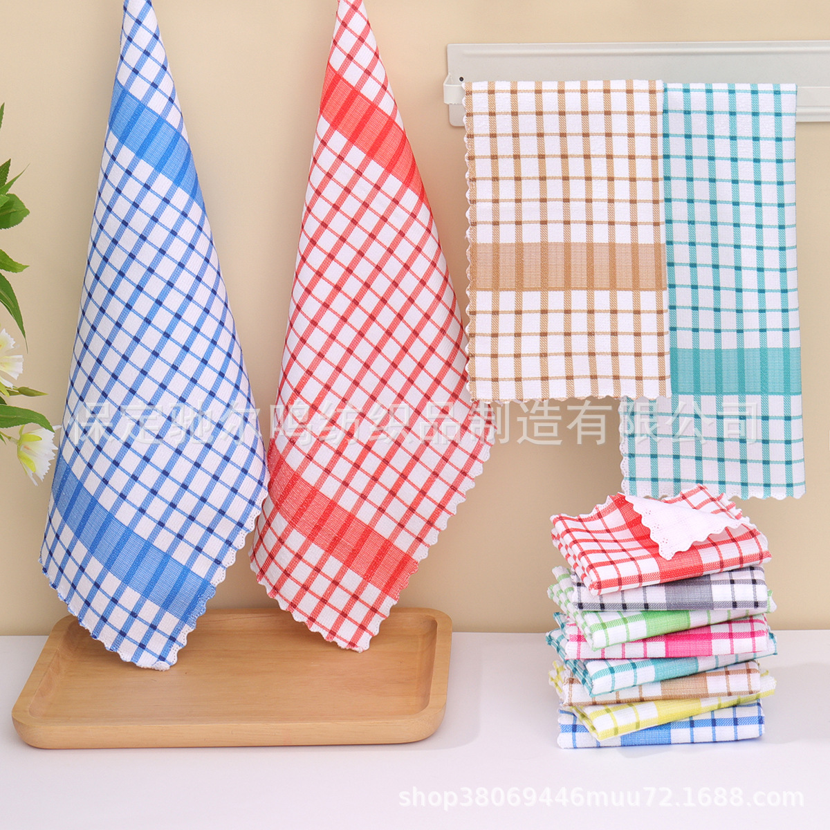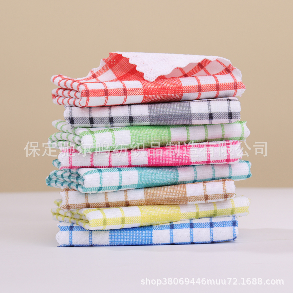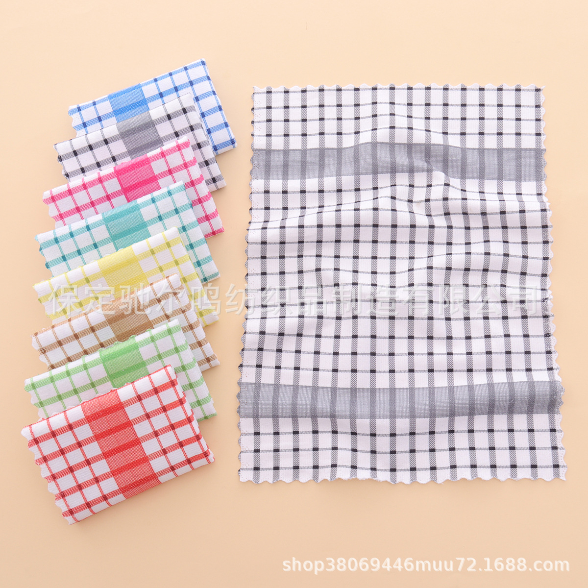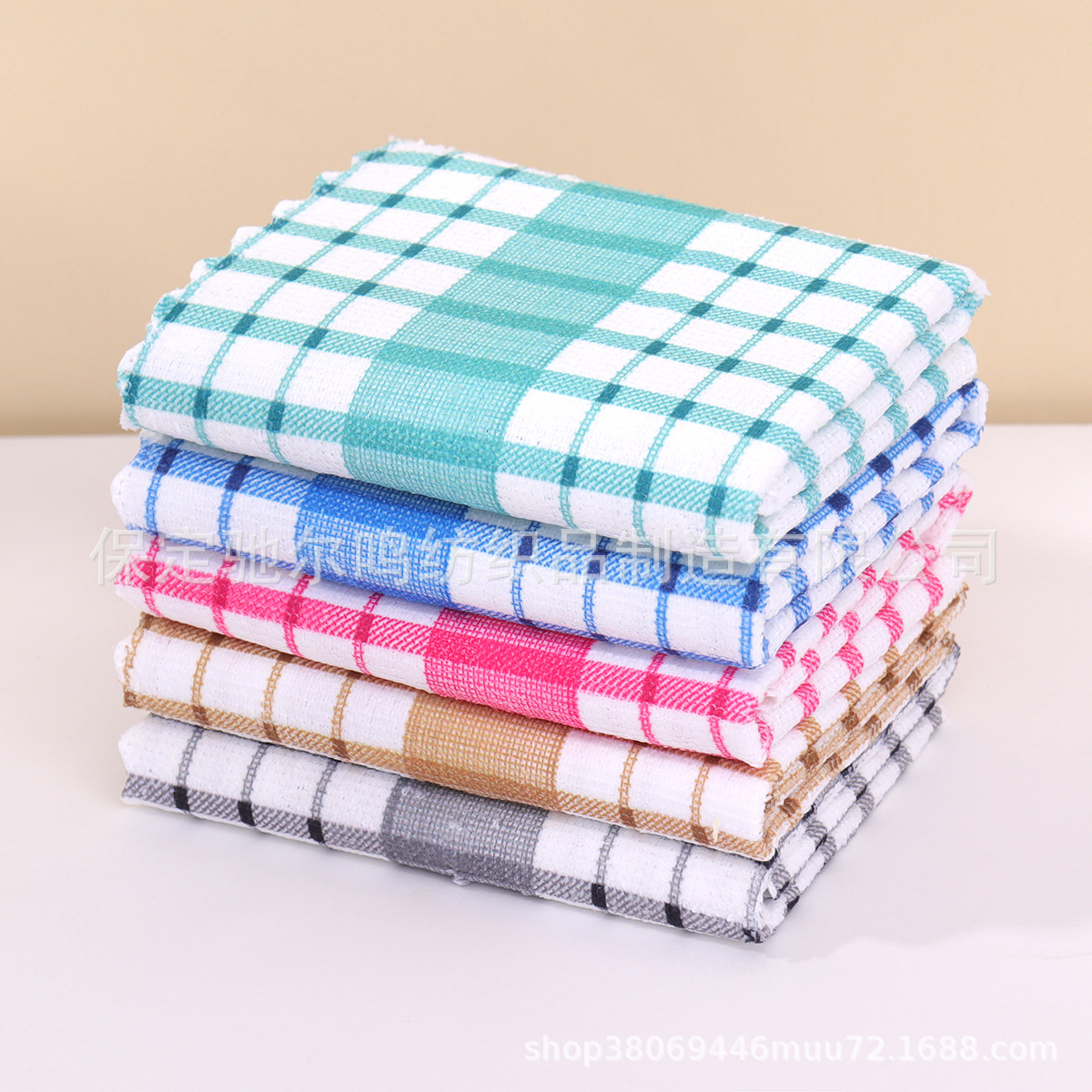 批发格子厨房茶巾吸水厨房巾跨境柔软毛巾抹布华夫格代贴标签代发