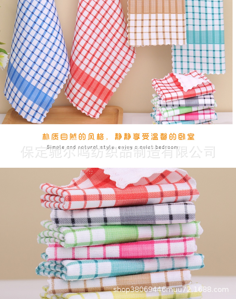 TEMU純綿茶巾クロスボーダーラベリングスポット多機能格子家事タオル厚手キッチン拭きテーブル皿洗い布