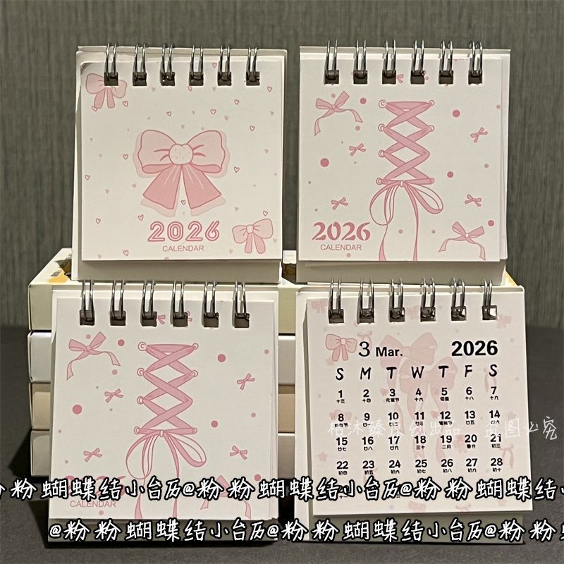 2026年粉粉蝴蝶结台历ins风高颜值可爱学生迷你桌面小日历摆饰