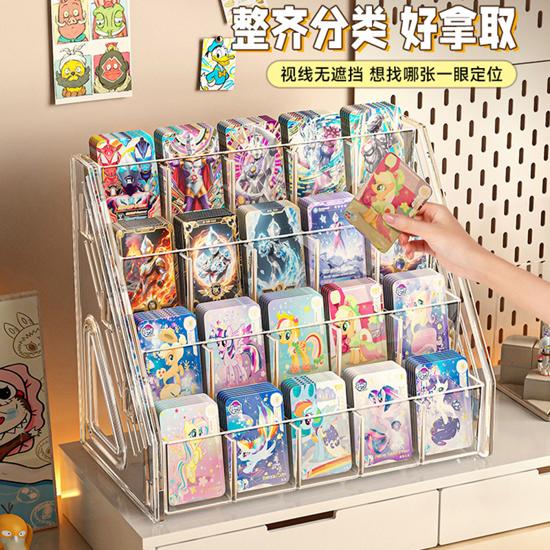 卡片展示架桌面小卡牌收纳摆放亚克力奥特曼明信片阶梯分格卡位盒