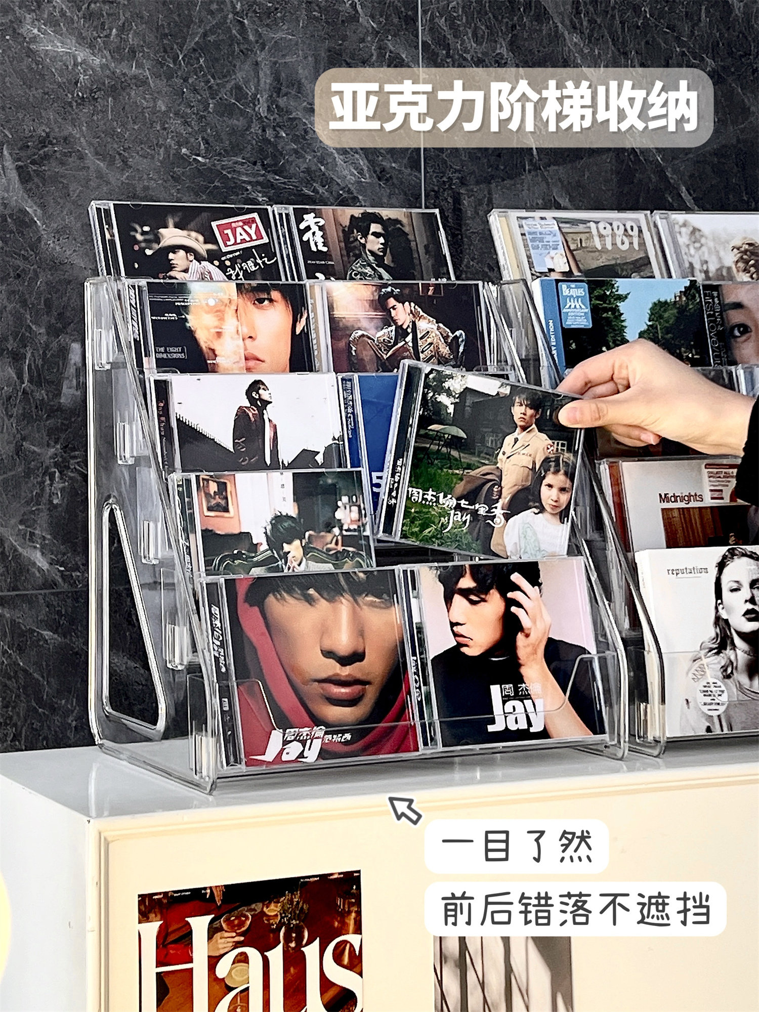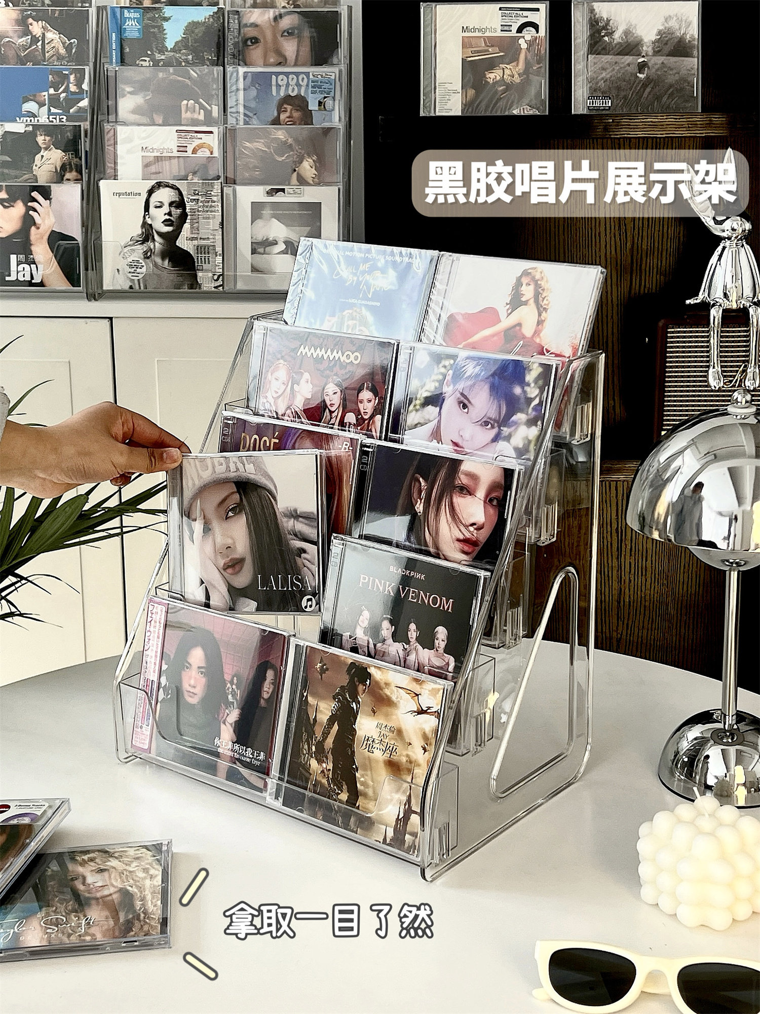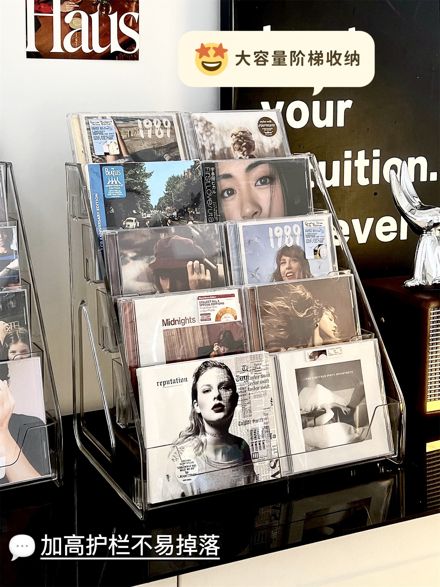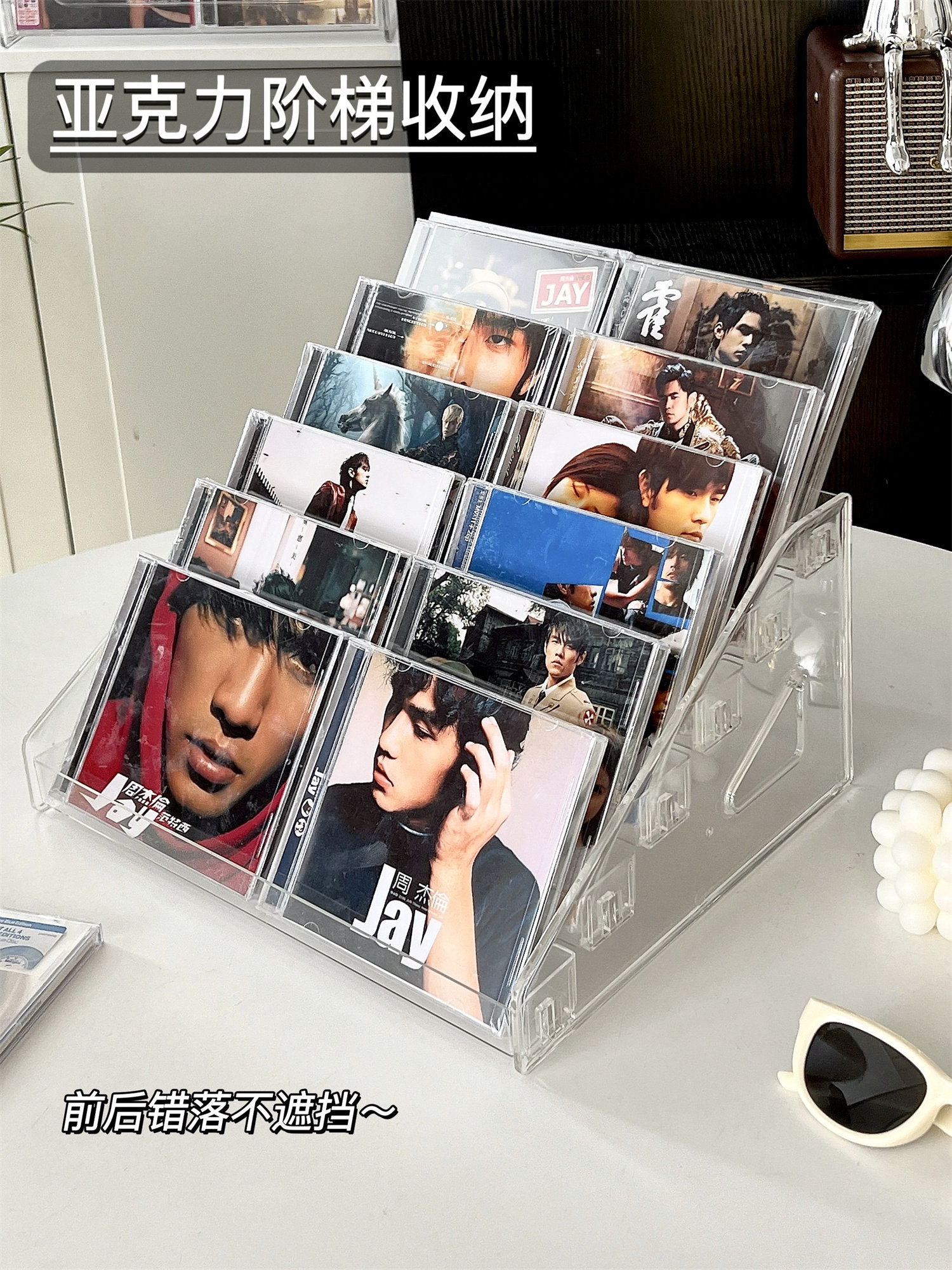 CD碟片架子亚克力阶梯黑胶唱片收纳盒光盘光碟磁带存放专辑展示架