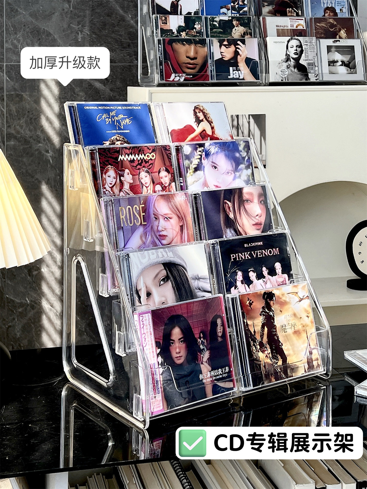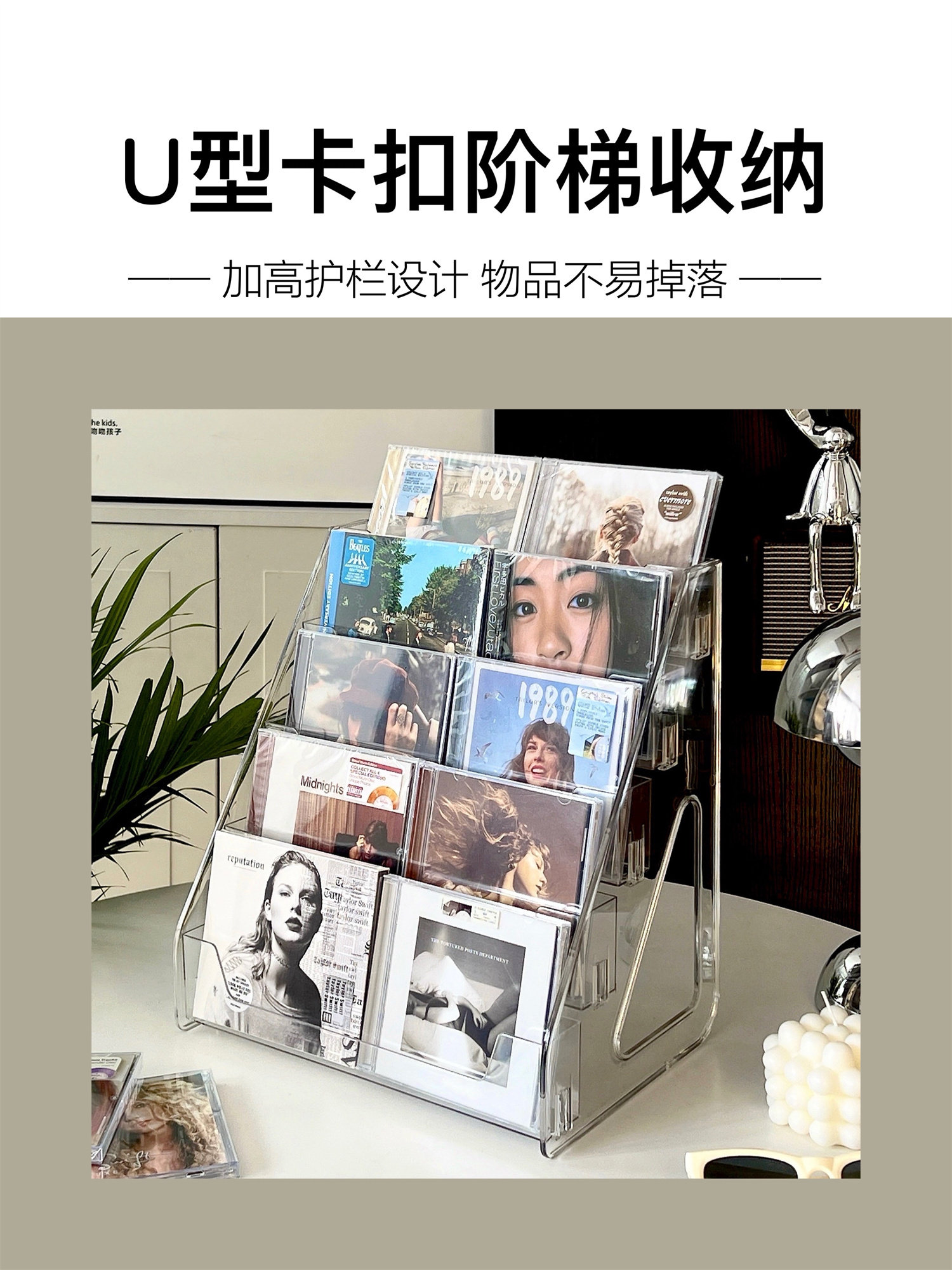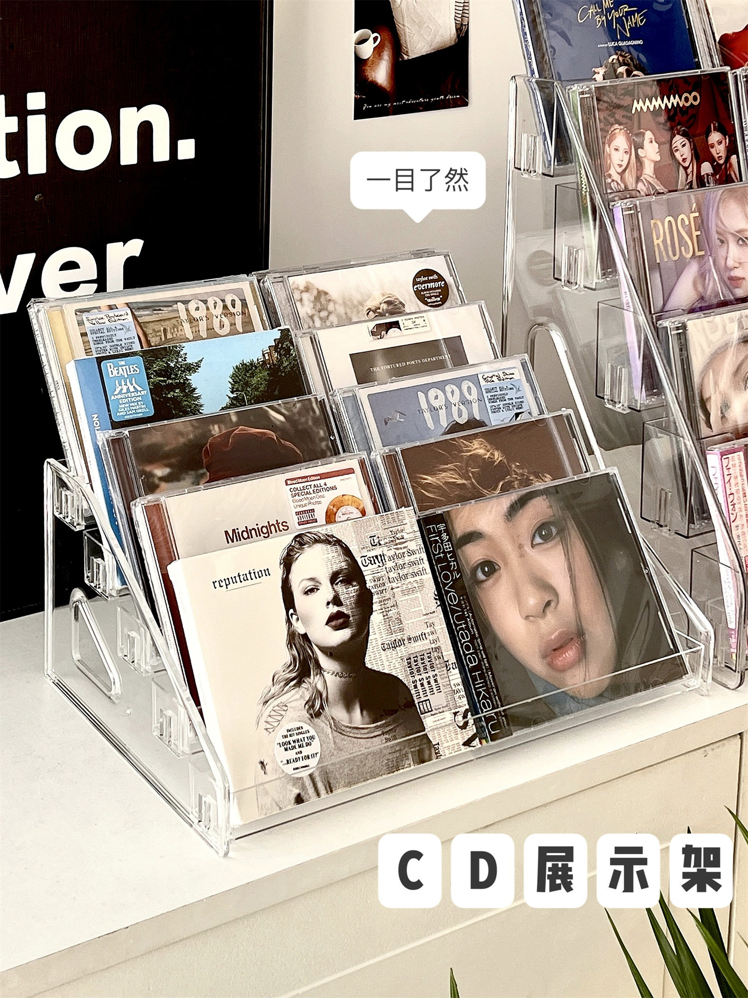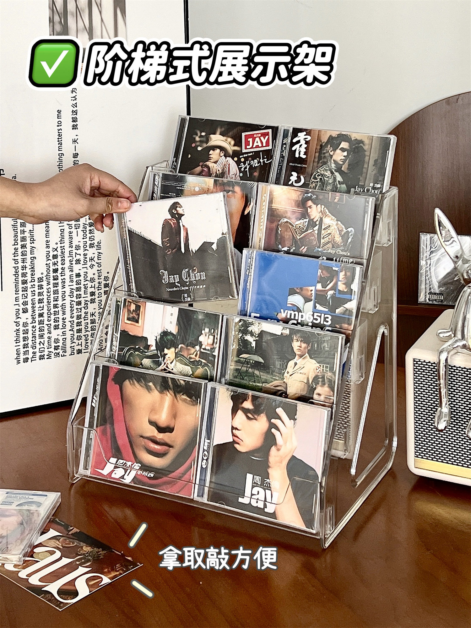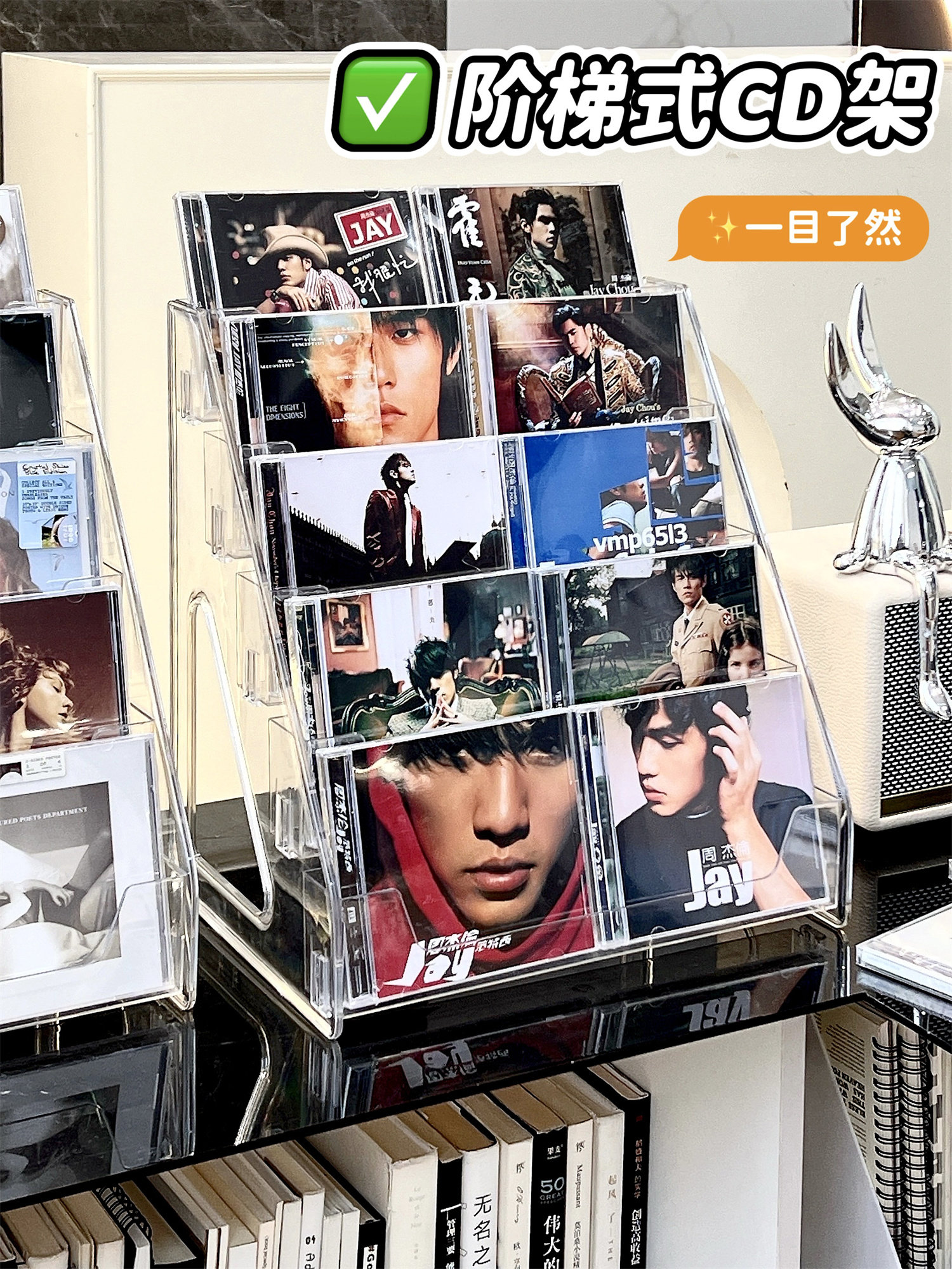 CD碟片架子亚克力阶梯黑胶唱片收纳盒光盘光碟磁带存放专辑展示架