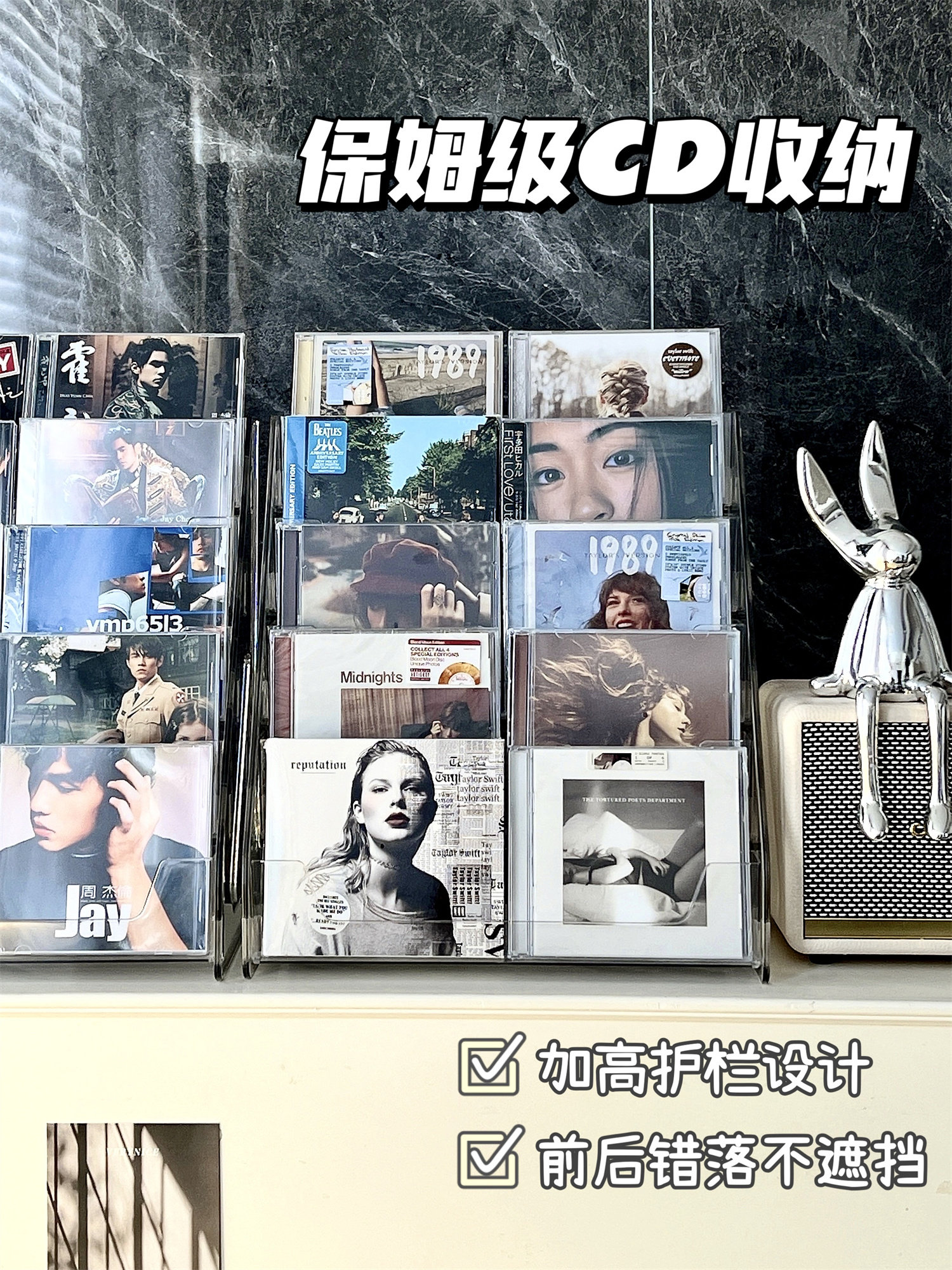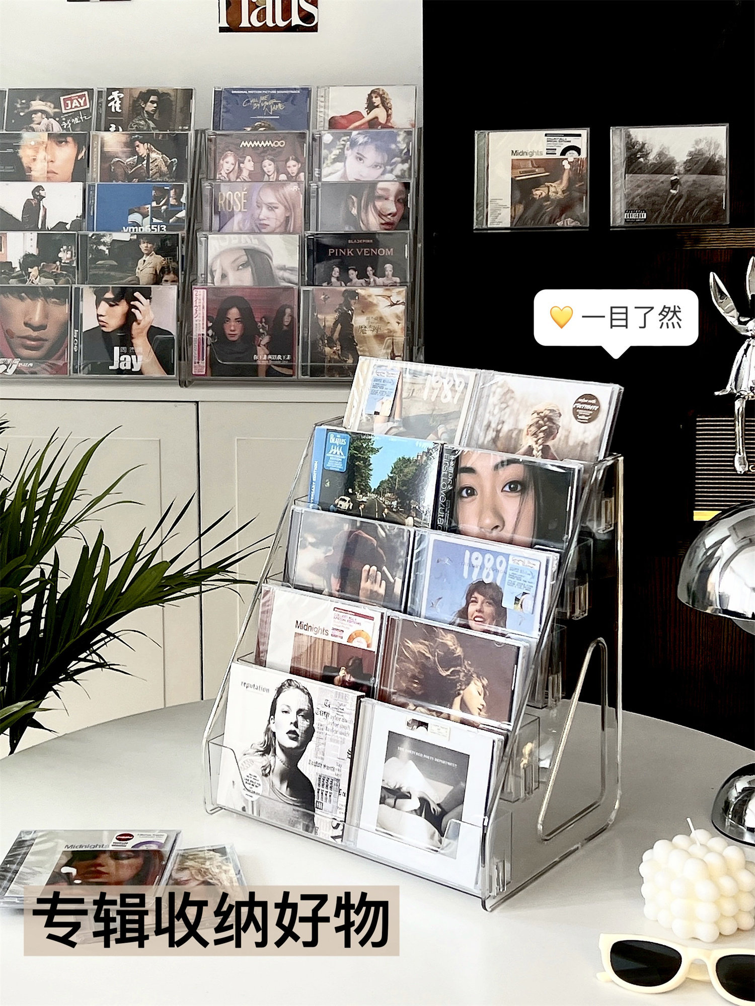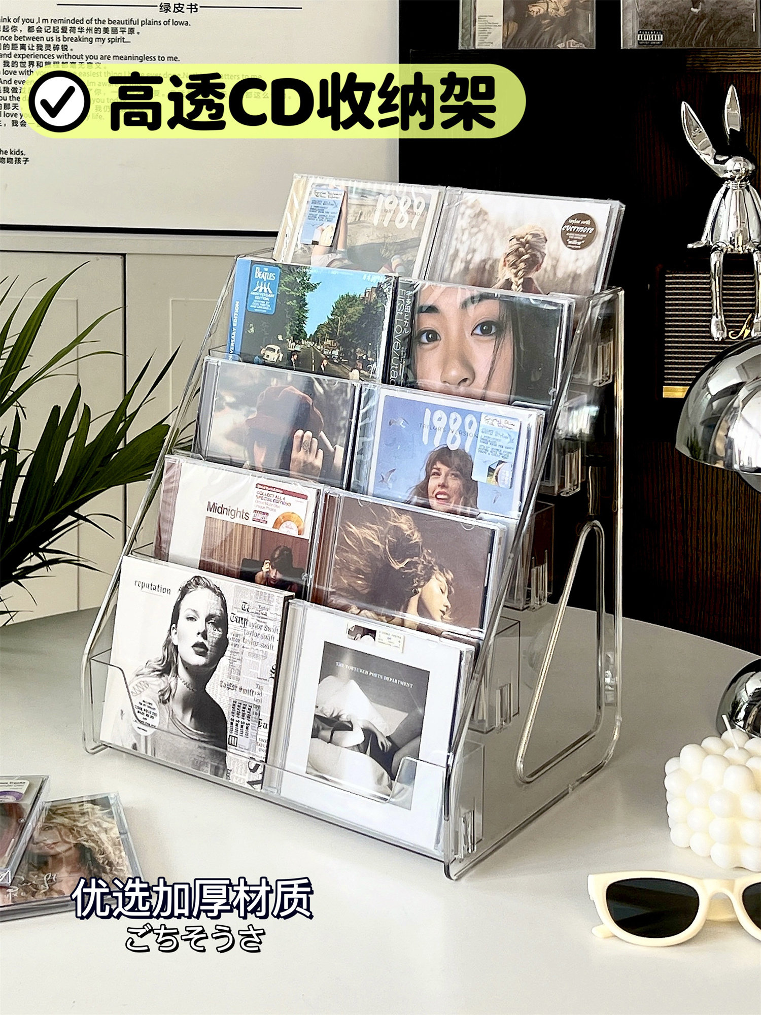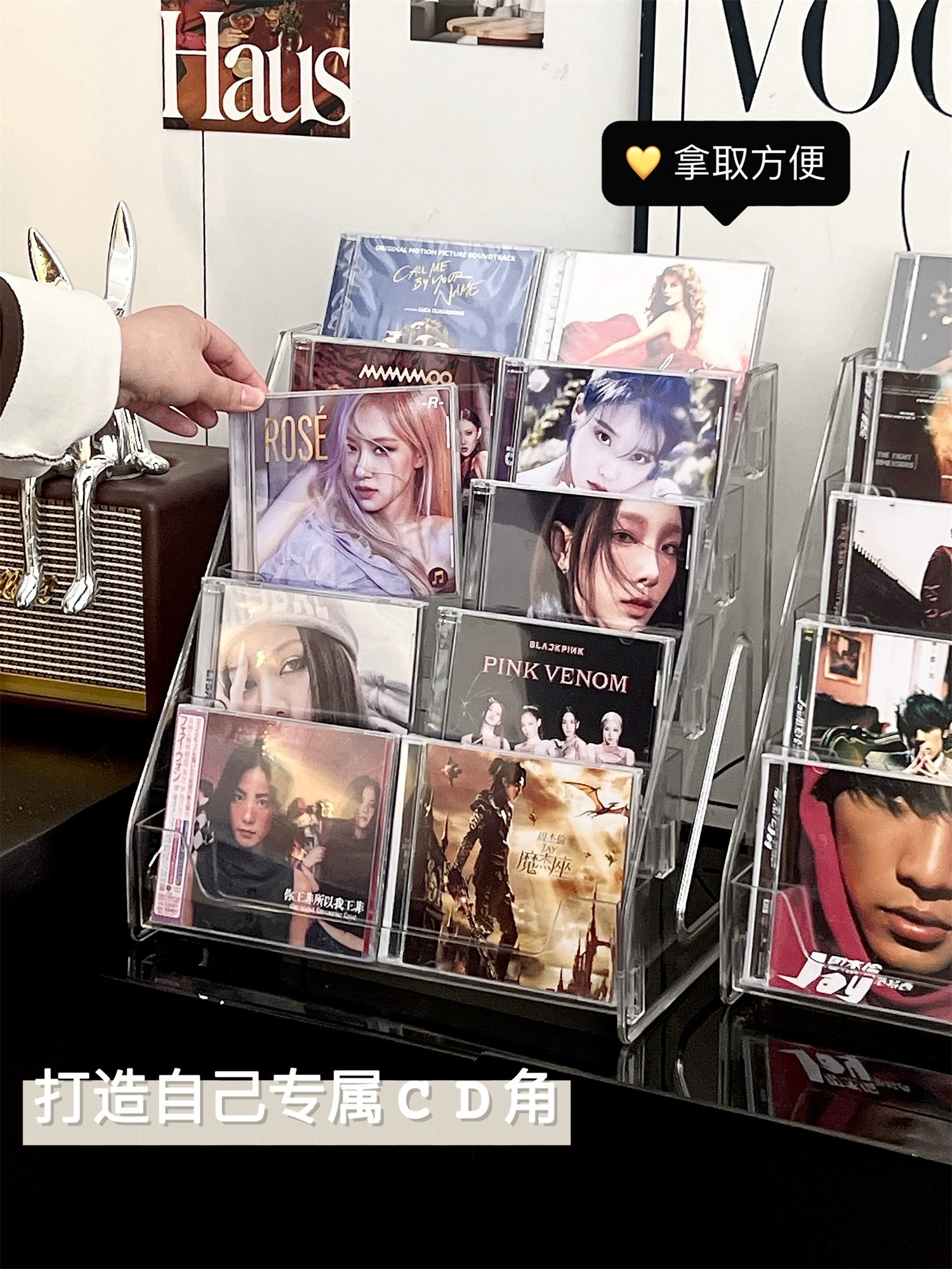 CD碟片架子亚克力阶梯黑胶唱片收纳盒光盘光碟磁带存放专辑展示架