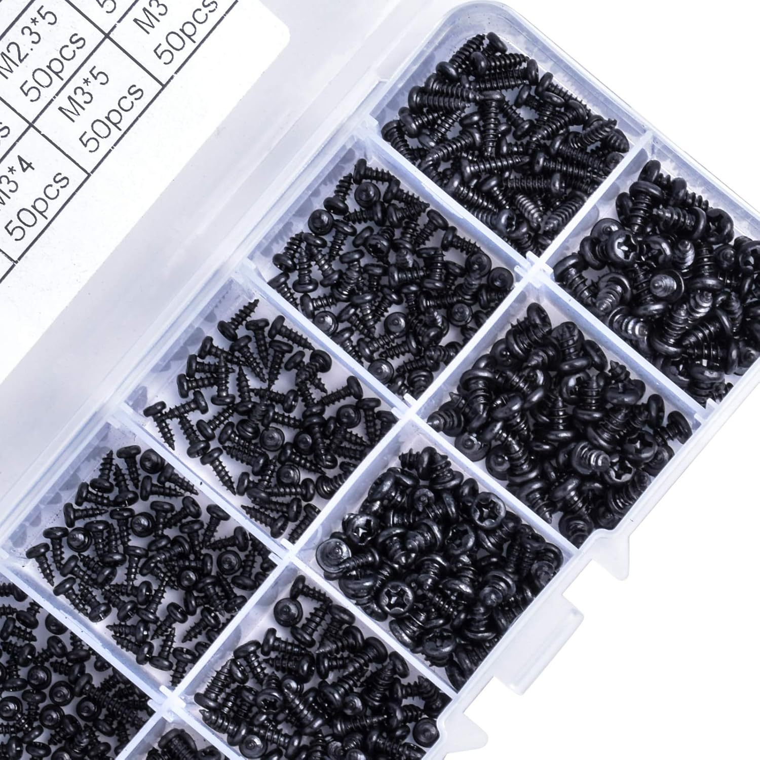 • 使用方便:所有螺丝都包装得很好,并混合在一个可重复密封的透明盒子中,方便存储和携带。