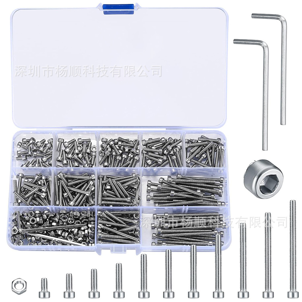 跨境440pcs盒装 304不锈钢圆柱头内六角螺母配螺栓扳手M3组合套装