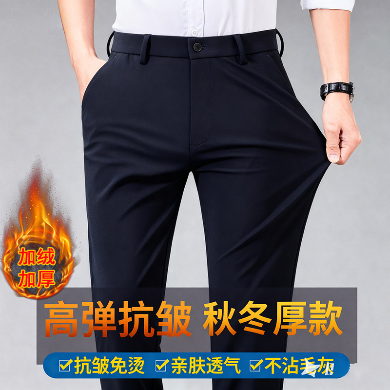 冬季加绒保暖西裤男士宽松大码直筒商务休闲裤春秋厚款西装长裤子
