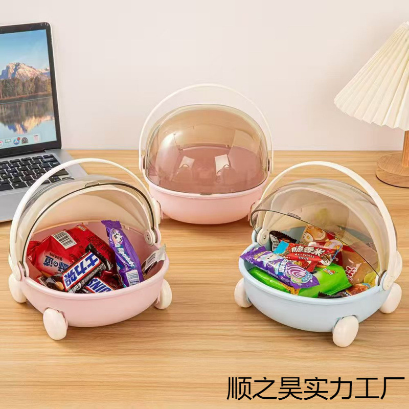 风玩具收纳盒杂物文具妆品储物盒防尘翻盖可爱卡通手提摇篮车