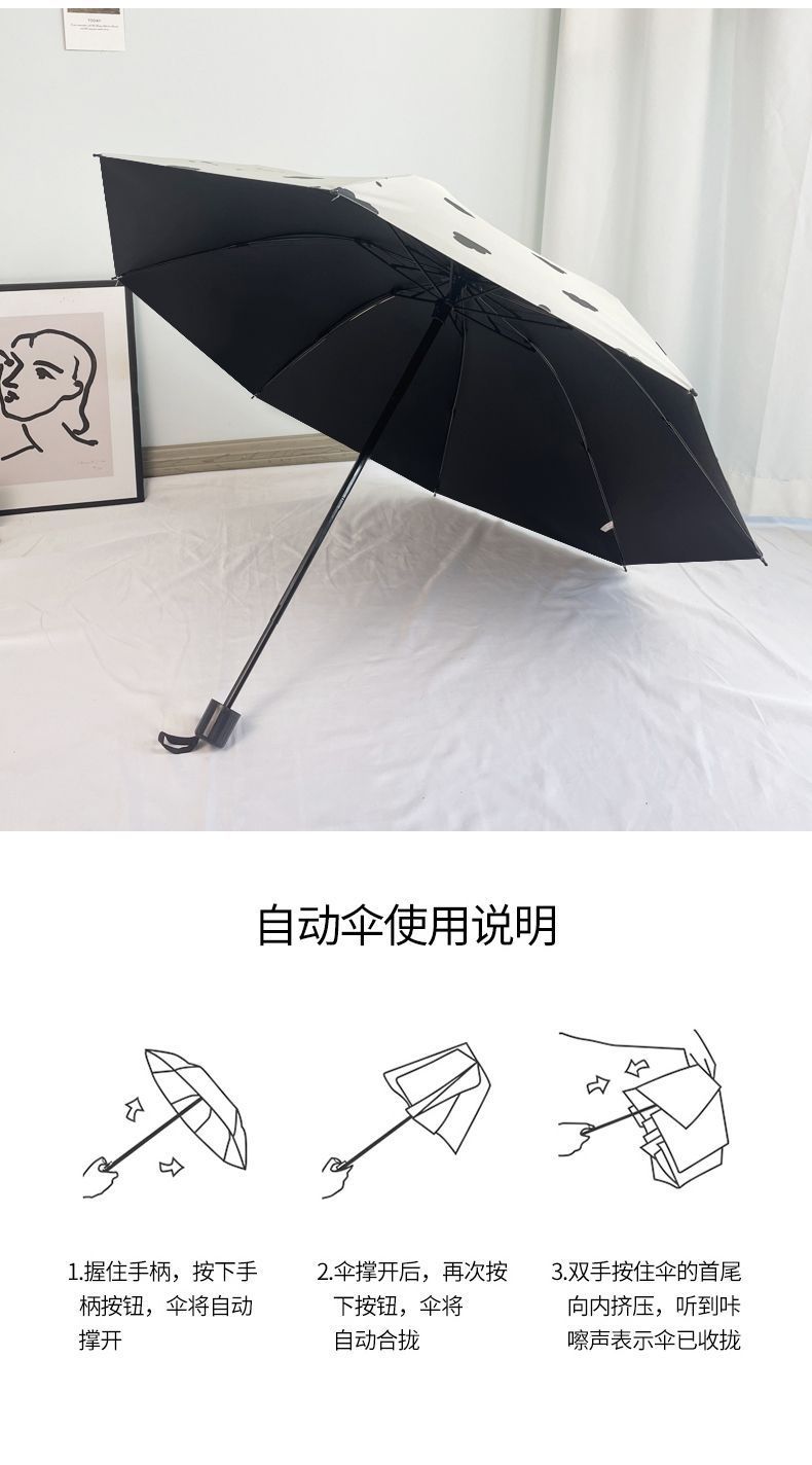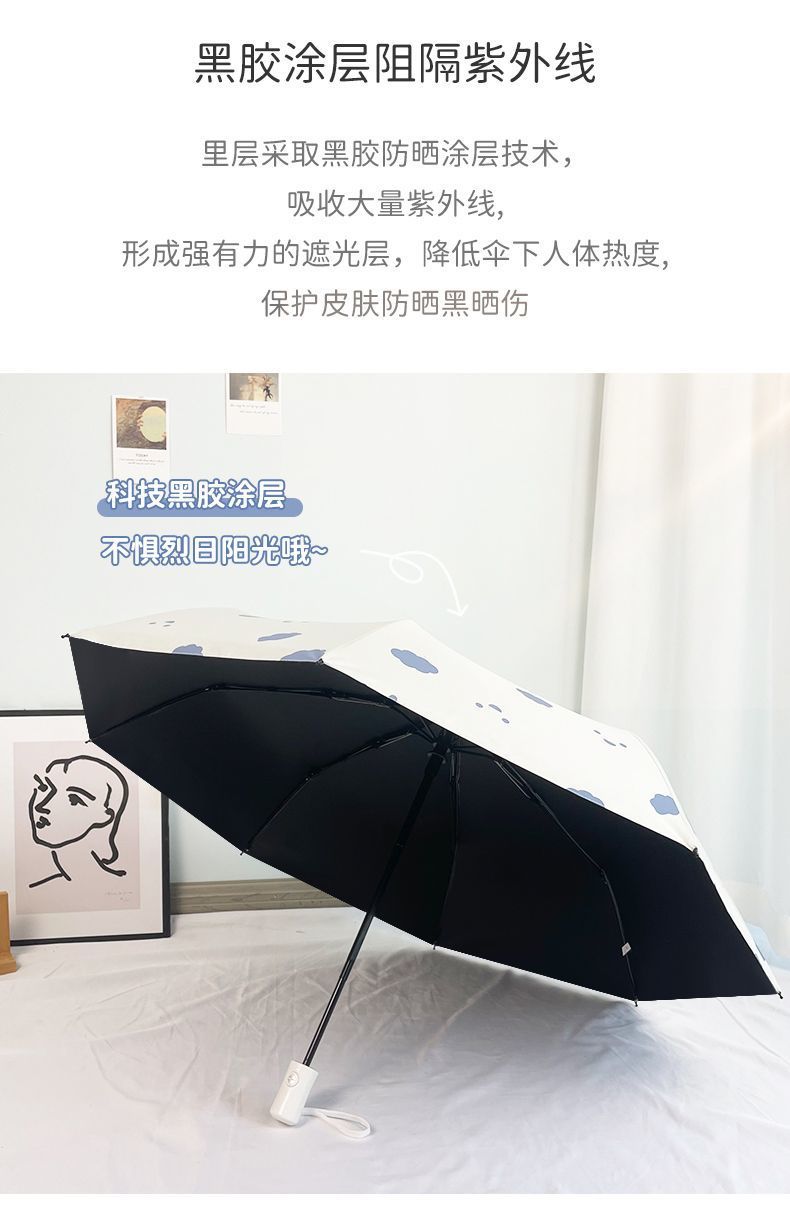 自動傘女小清新ins風花折り畳み学生黒ゴム日焼け止め晴雨両用日除け傘三つ折り