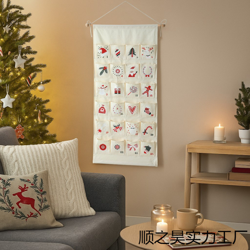 跨境新款亚马逊圣诞节新挂历帆布挂历悬挂袋口袋兜降临挂历装饰