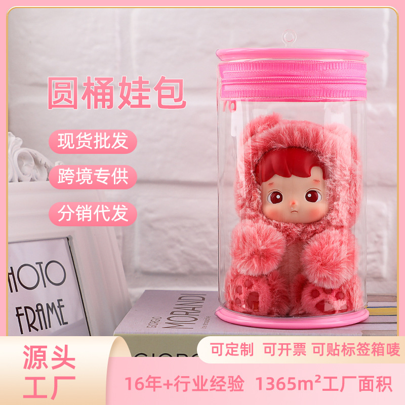 labubu罐装遛娃包12cm16cm毛绒娃娃圆桶包透明加厚pvc收纳娃娃包