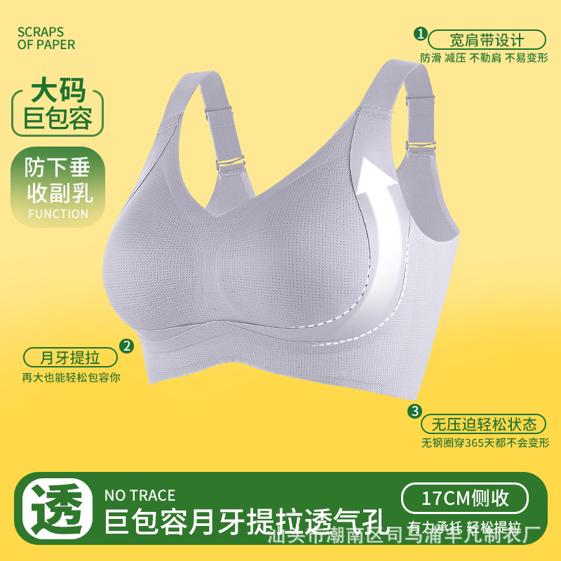 無痕粉底液ステルス下着女性夏の薄いタイプのスチールリングのない大きい胸は小さくて快適で、痩せています。