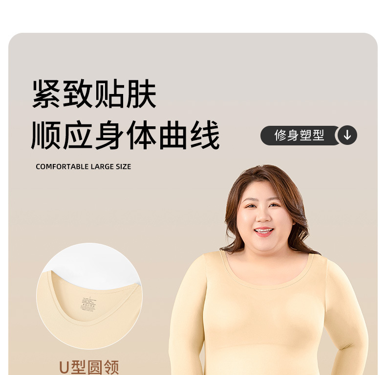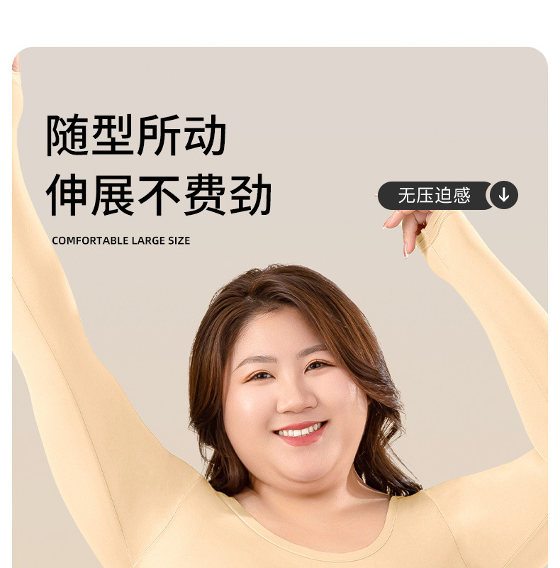 欧美大码跨境专供美肤衣长袖无痕轻薄肌底秋裤套装保暖打底内衣女