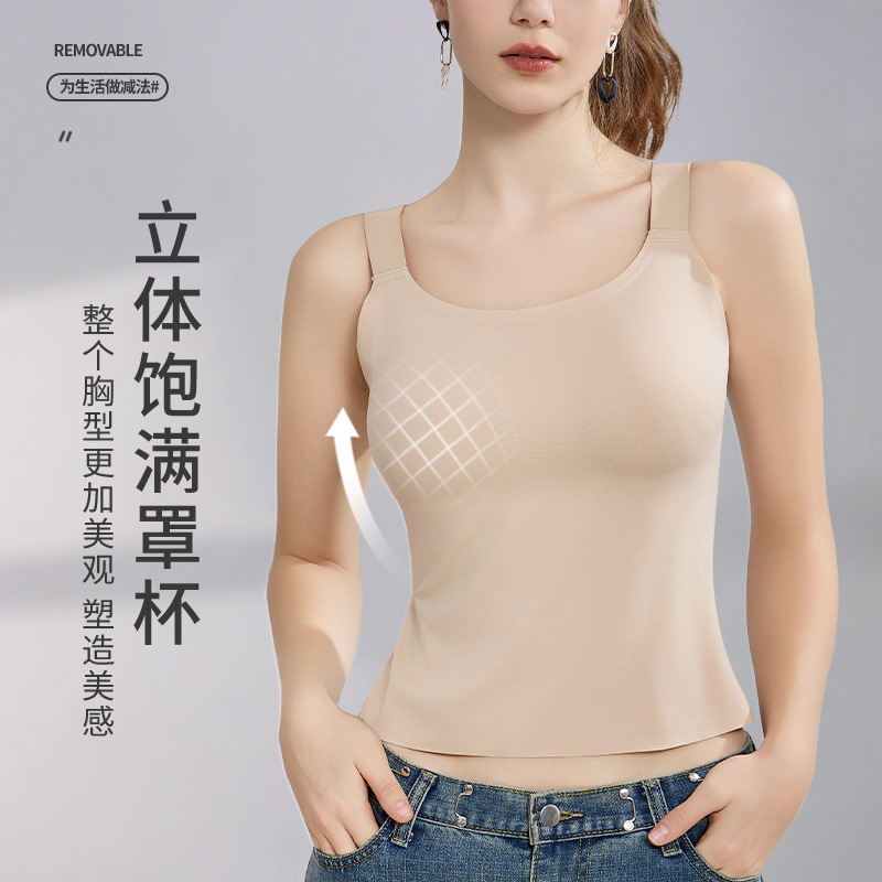 ストラップの底のシャツのベストの女性の中で夏に胸のパッドをつけて底の美背を打って光の下着のブラジャーのベストの一体を防ぎます。
