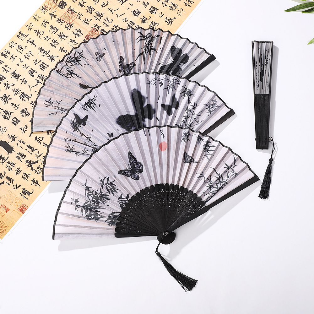 夏の水墨風蝶扇子、強くて耐久性のある熱中症対策クーラーファン、古典的な新しい中国風の折りたたみ竹扇子