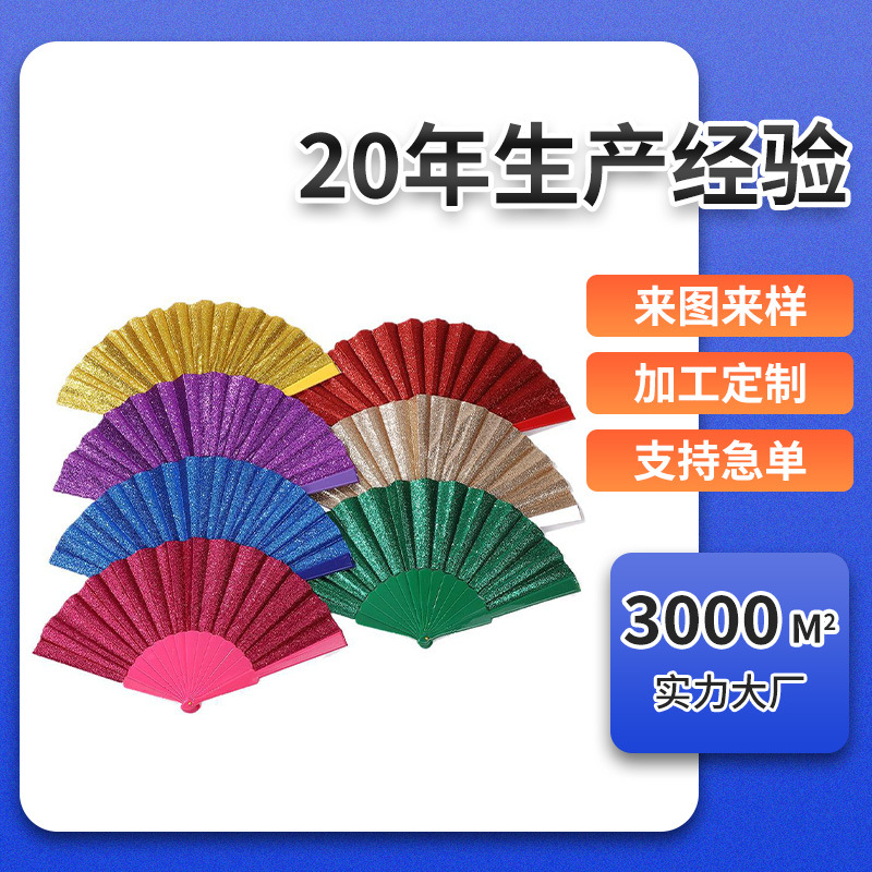 亮粉平板折扇塑料响扇广场舞表演道具素面折扇炫彩太极扇子批发