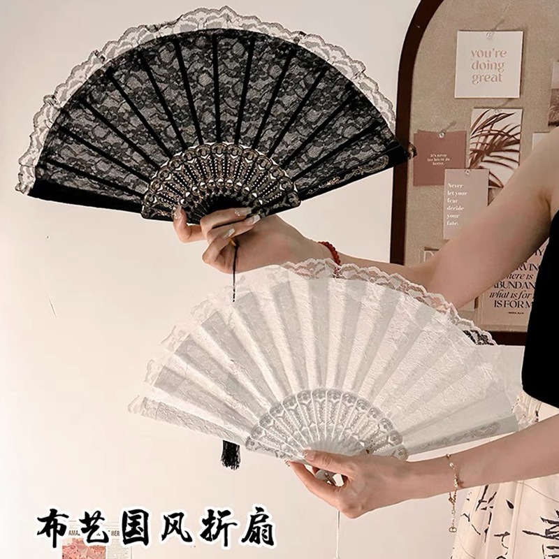 中華民国スタイルのレトロなレース扇子、新しい中国風の無地の写真小道具扇子、気質と魅力の古代スタイルの扇子
