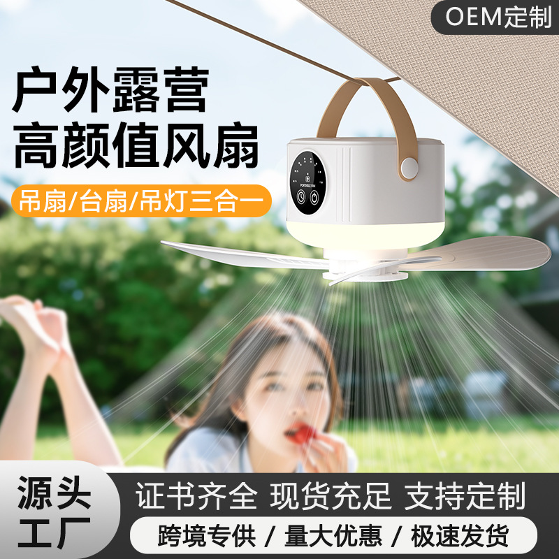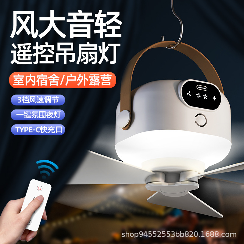 新品跨境风扇户外帐篷USB充电露营风扇便捷式遥控静音宿舍小吊扇