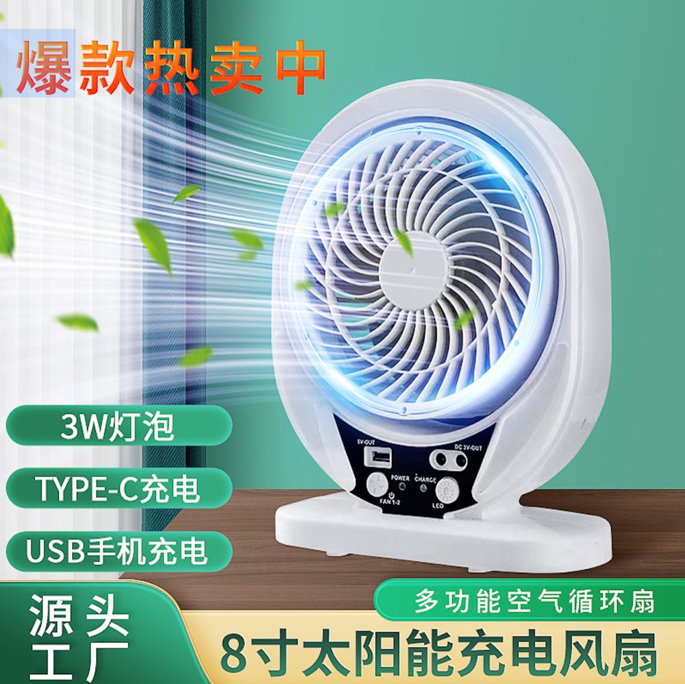 外国貿易の爆発金8インチusb充電太陽ファンランプセット多機能空気循環ファン大風力ファン