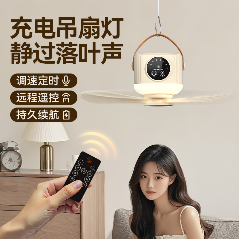 2025新款吊扇可充电户外露营小型便携式学生宿舍床上usb夜灯风扇