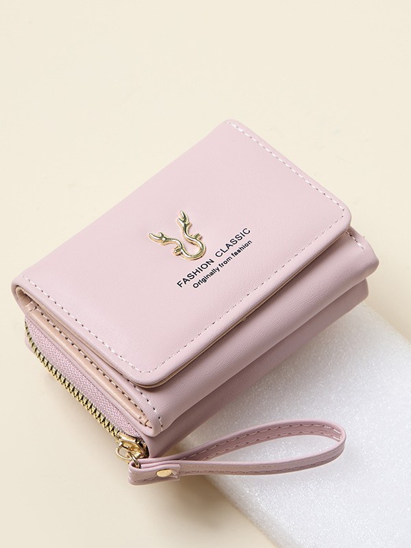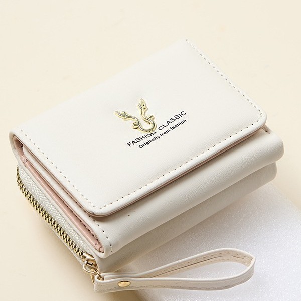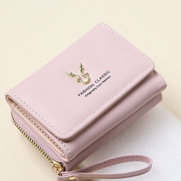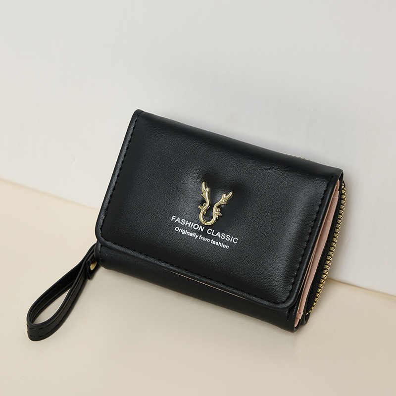 新品レディース財布puレザーショートタイプ鹿角財布ミニジッパー小銭入れ漫画三つ折りバックルカードケース