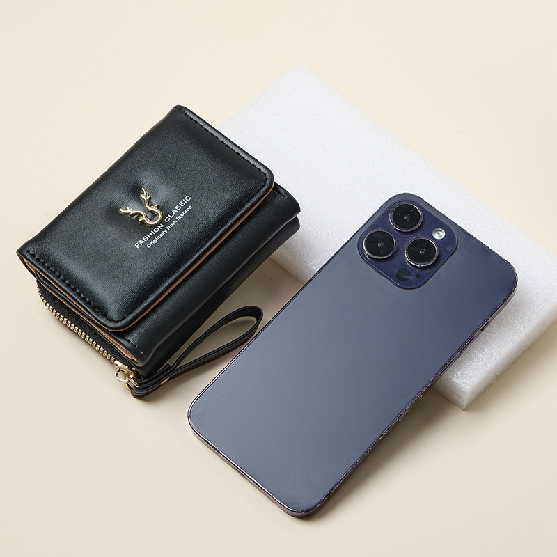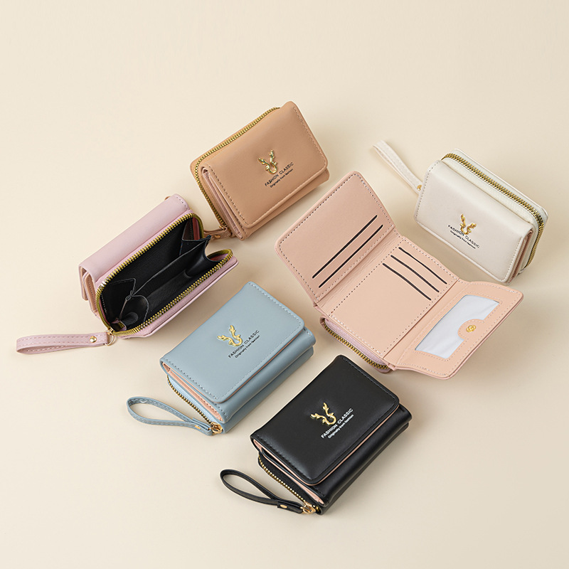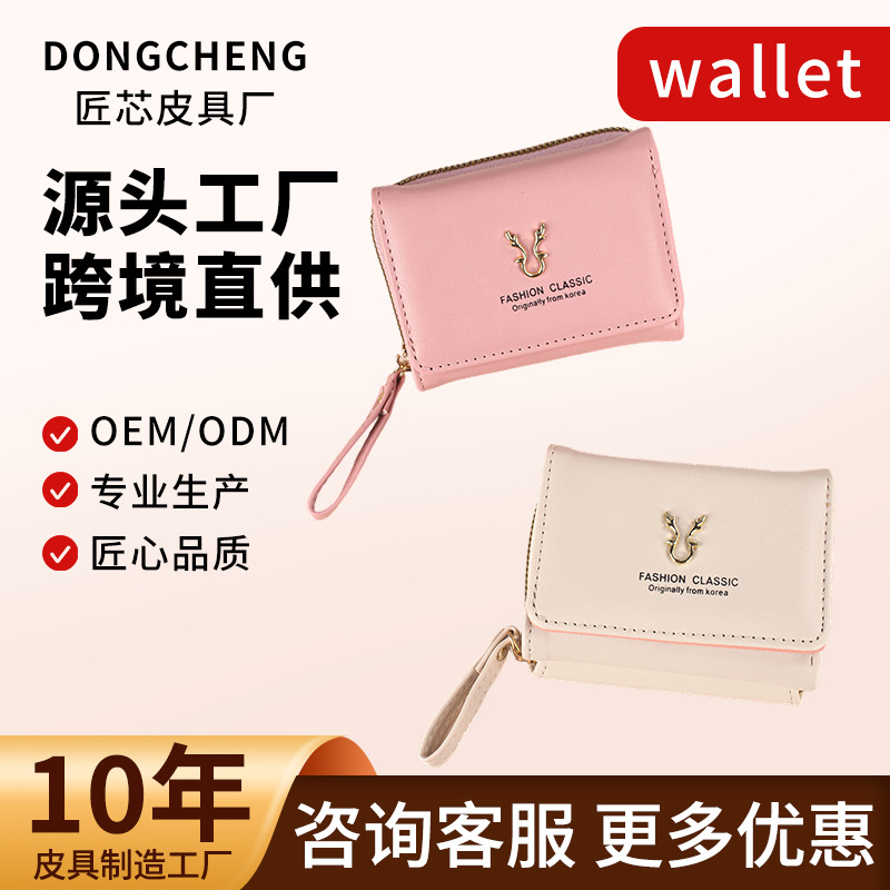 国境を越えて人気のある女性の財布の短い鹿の角の財布のミニカードバッグの小銭入れの二合一のファッションの三つ折の財布