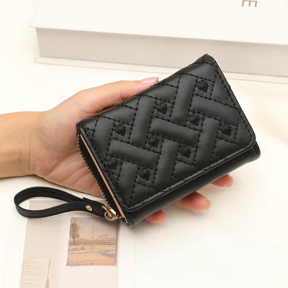 工厂新款女士短款钱包百搭刺绣零钱包女款高级感钱包女短款批发