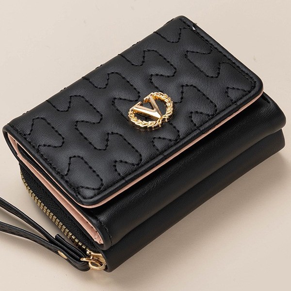 三折钱包女款PU皮钱夹子多卡位多功能迷你时尚卡包拉链零钱袋收纳