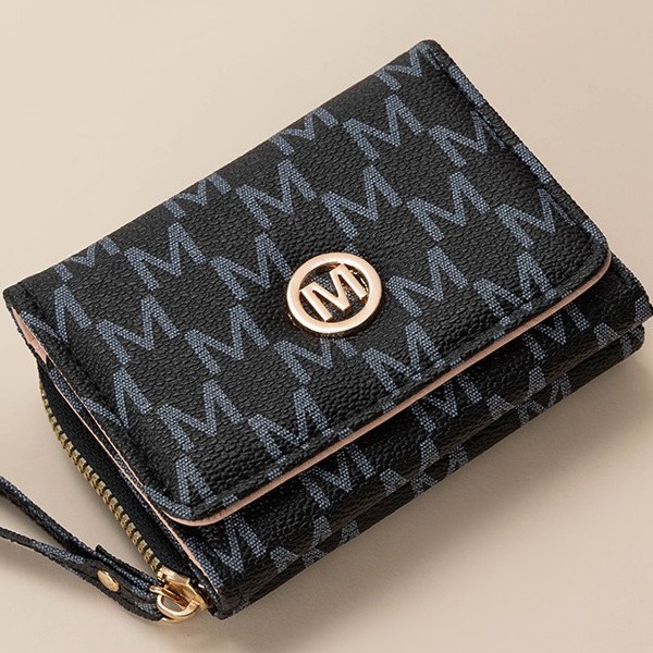 新款时尚印字母三折多卡位欧美复古短款钱包