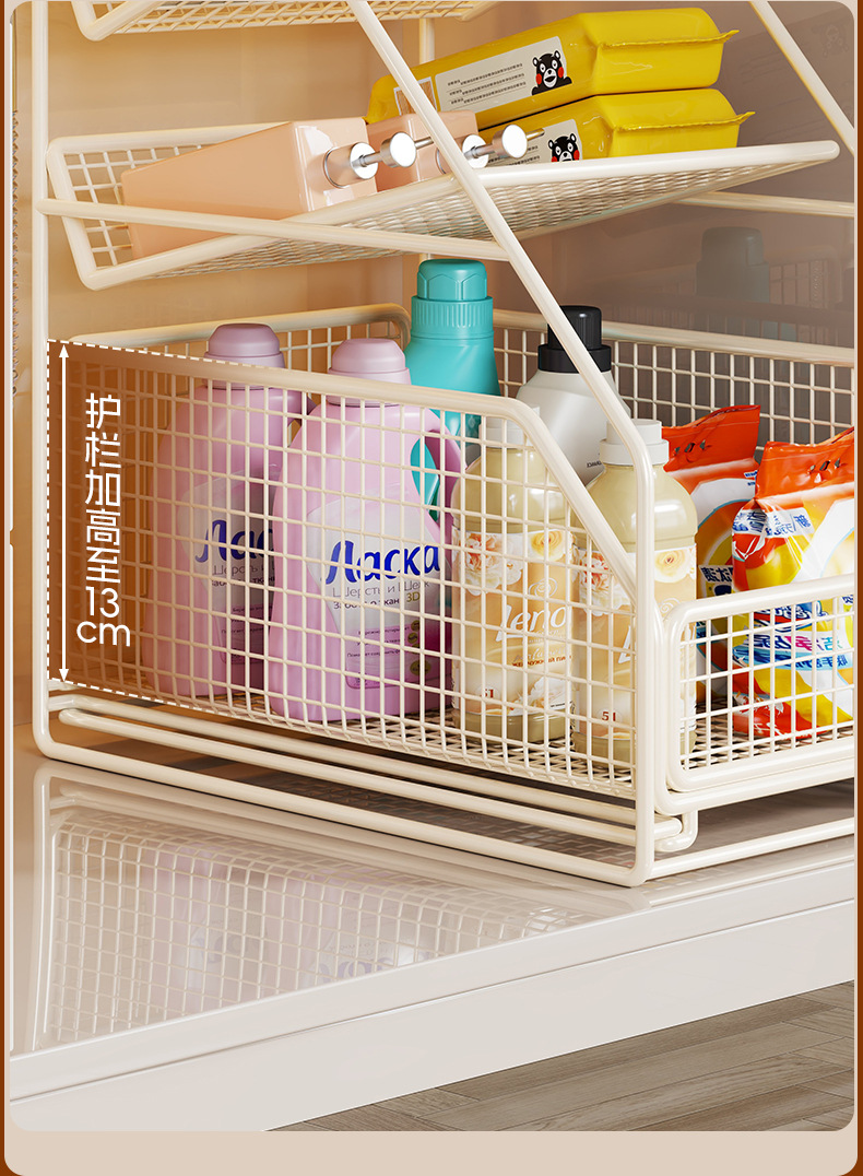 厨房下水槽抽拉式多层拉篮置物架多功能橱柜内分层收纳储物筐神器