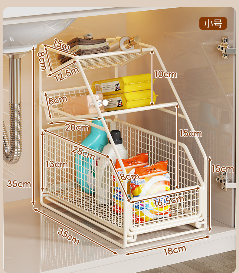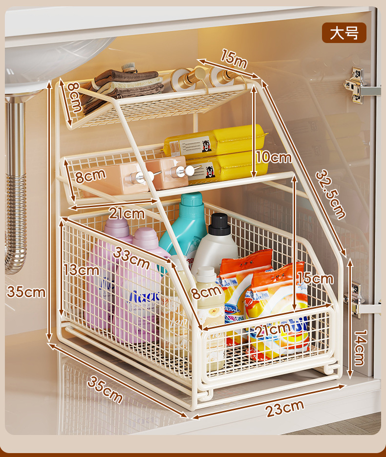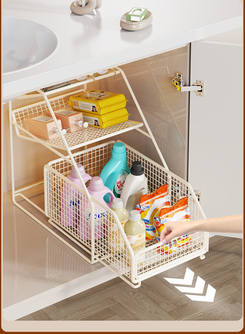 卫生间下水槽置物架抽拉式浴室柜下收纳筐厕所洗漱台橱柜内分层架