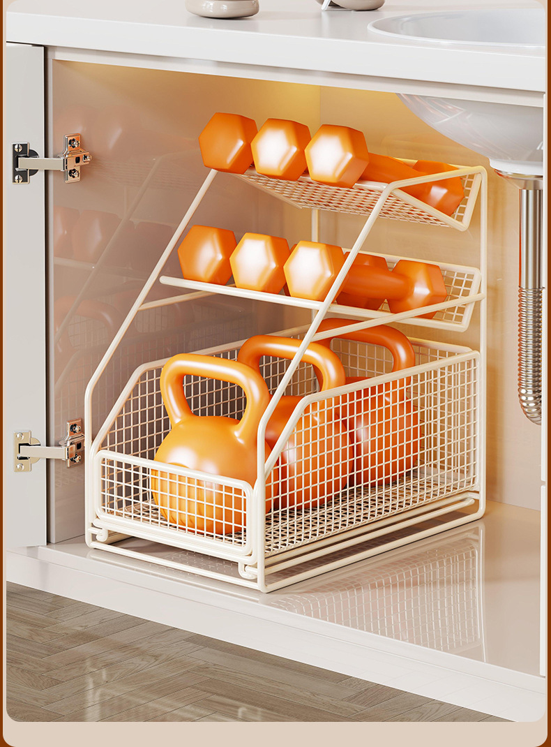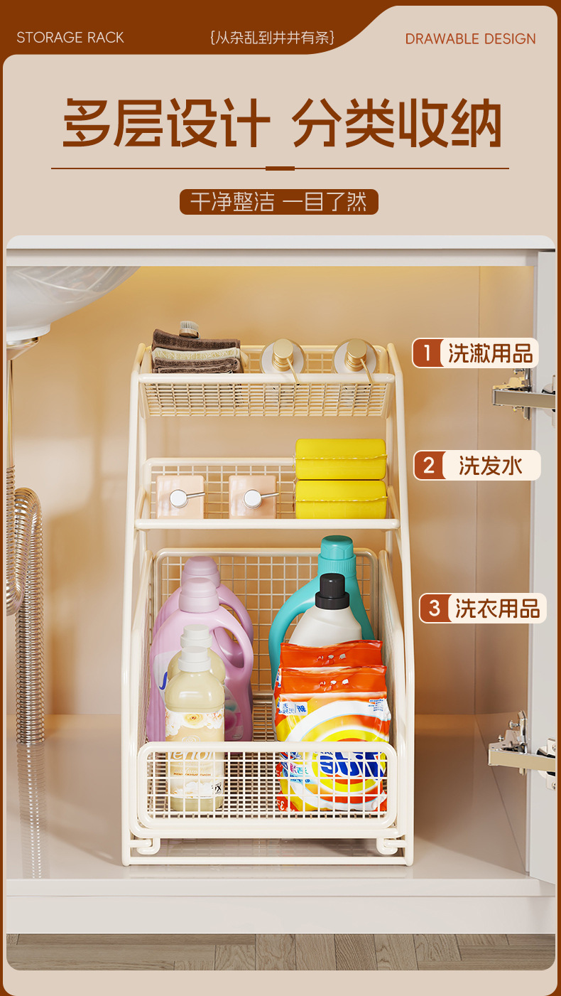 下水槽置物架浴室柜下抽拉式收纳盒分层架橱柜卫生间洗手台收纳篮