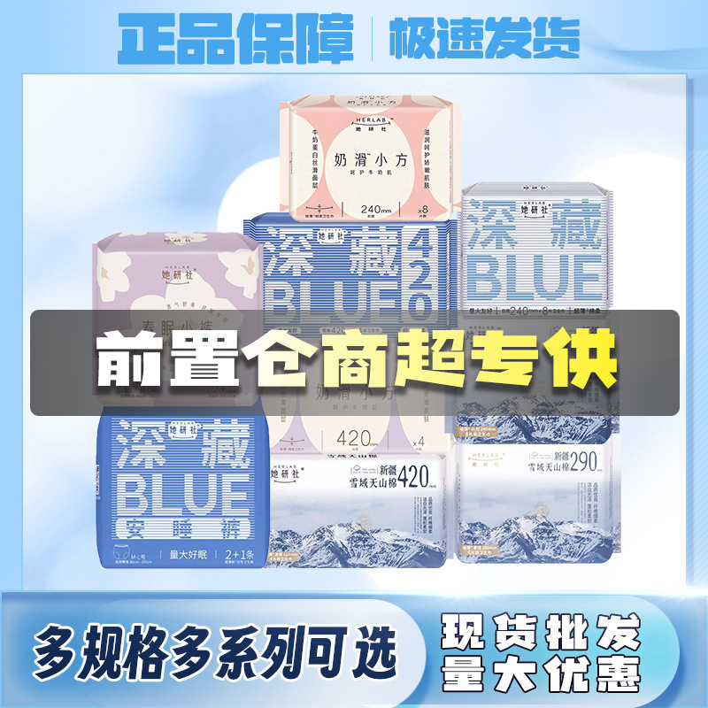 她研社卫生巾深藏BLUE日用超长夜用奶滑安睡裤护垫整箱批代发正品