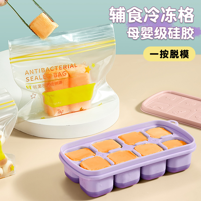 A辅食冷冻格婴儿辅食盒分格独立储存分装肉泥浓汤宝宝硅胶模具