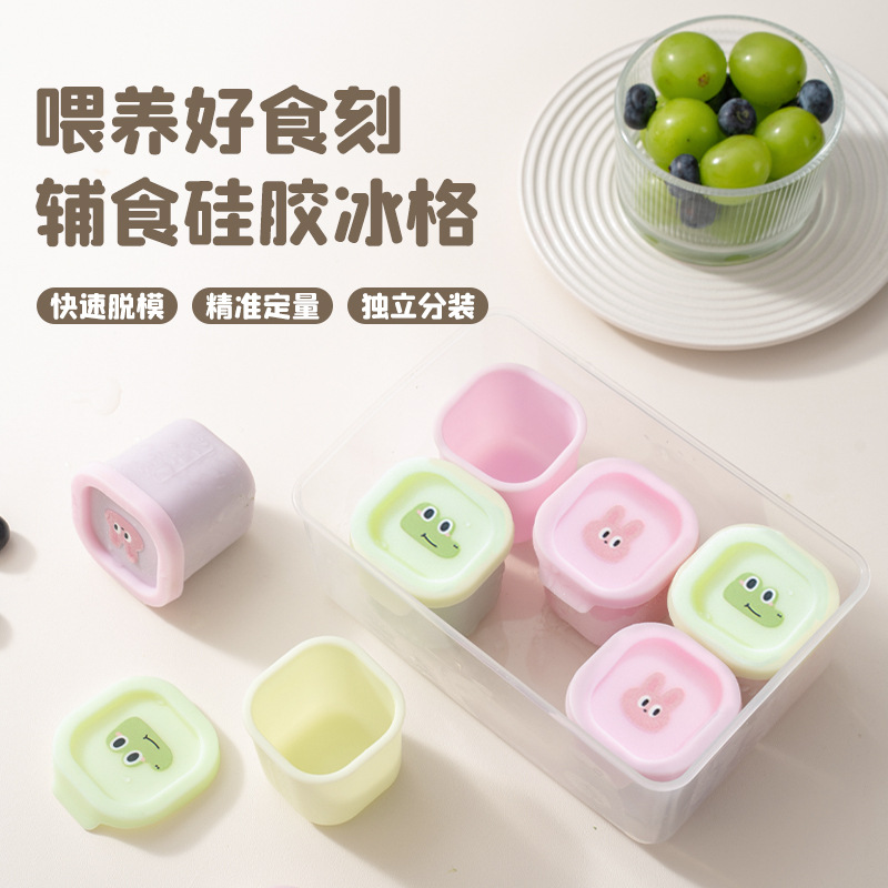 厂家供应婴儿辅食冷冻格独立分装盒宝宝硅胶辅食盒冰格可蒸煮模具