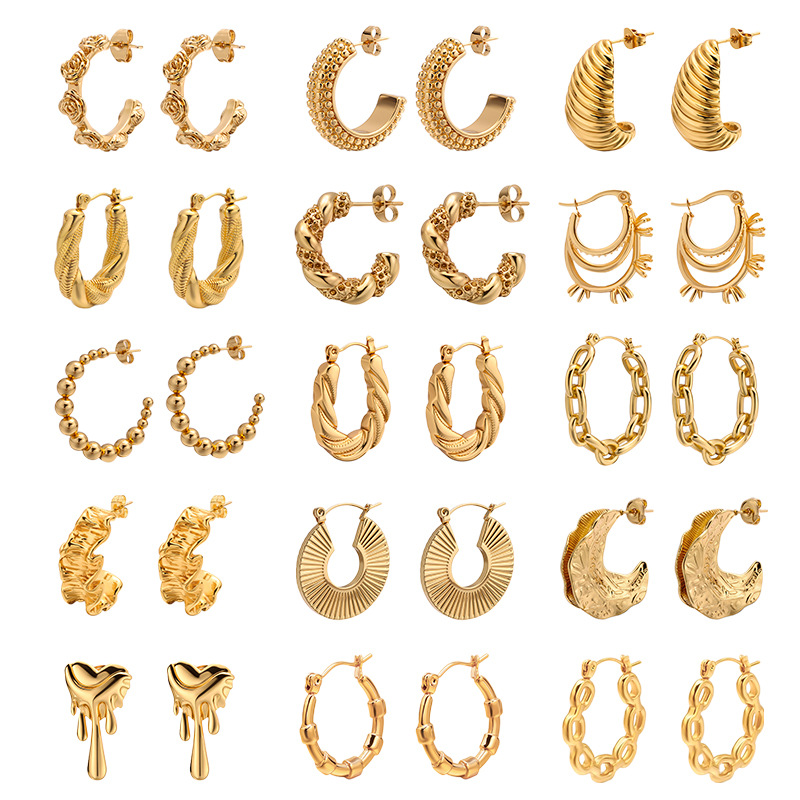 ヨーロッパとアメリカのクロスボーダーライト高級ハイエンド気質イヤリングステンレス鋼メッキ18kゴールドシンプルなレトロチタン鋼イヤリングジュエリー