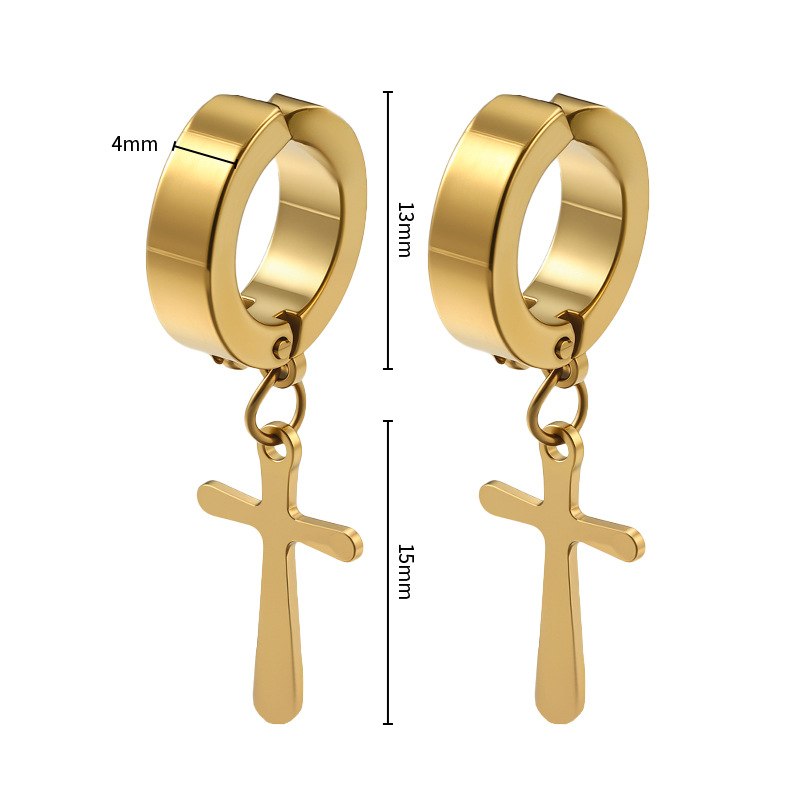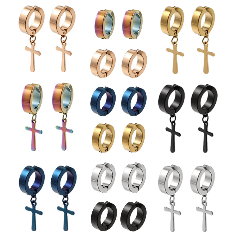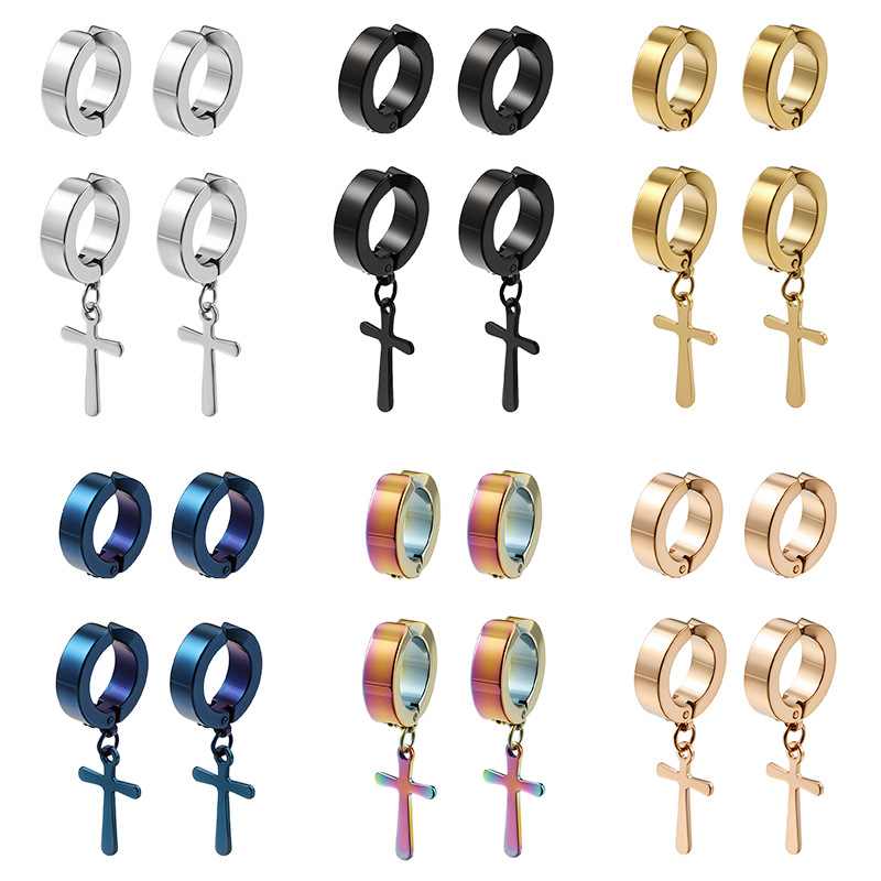 欧米の人気ファッションチタン鋼男性クロスイヤリングステンレスヒップホップトレンドピアスアクセサリー卸売り