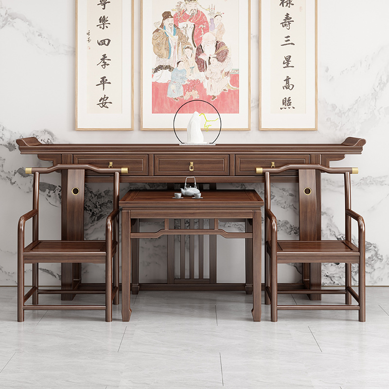 無垢材中堂6点セット、新しい中国風の祭壇、田舎の中堂の祭壇、仏壇、家庭用八仙テーブル