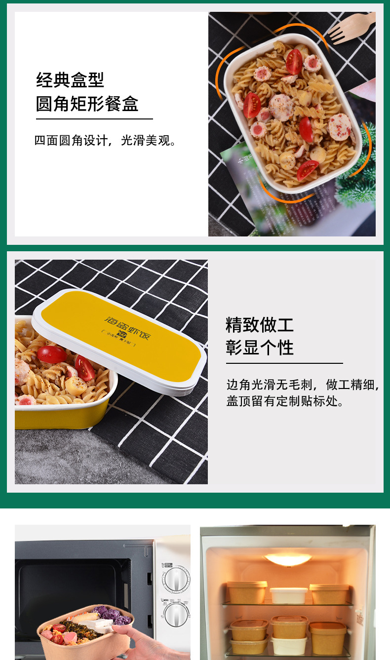 使い捨て食品グレードのクラフト紙長方形の丸いテイクアウト弁当箱紙ボウル商業フルボックス印刷カスタム卸売